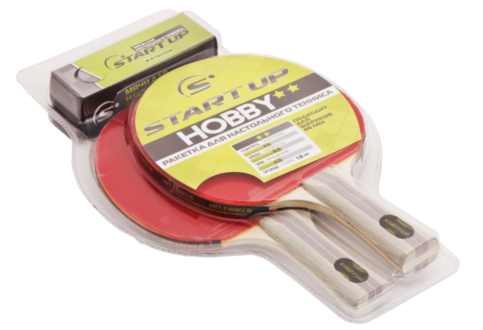 Набор ракеток для настольного тенниса (2 ракетки, 3 шарика) START UP BR20/2 star (8015)
