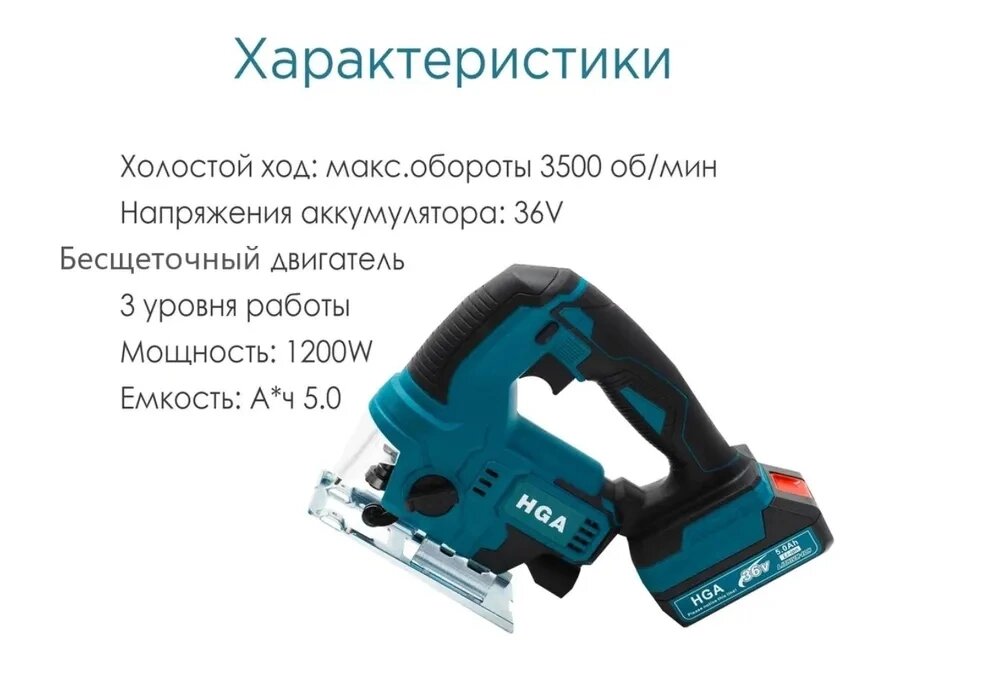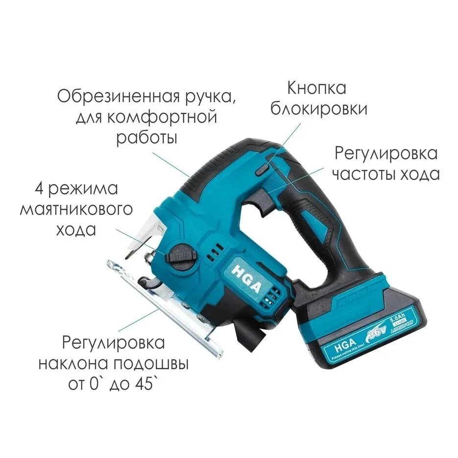 Лобзик аккумуляторный 36 V, Li-ion, 5.0 Ah, комплект с кейсом интересное: