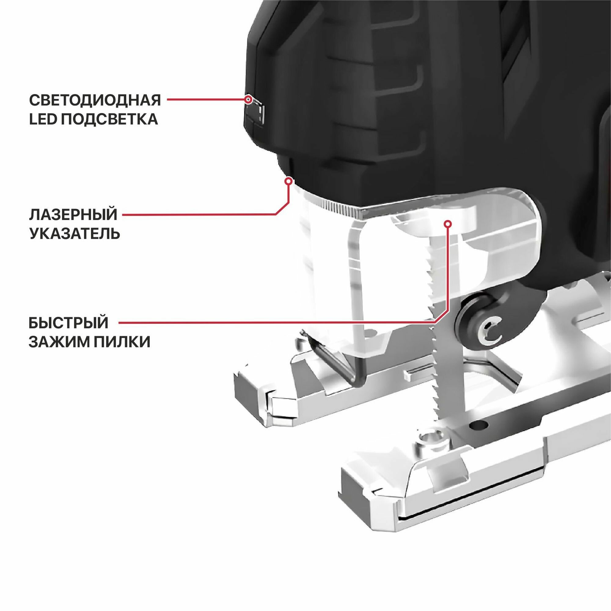 Лобзик электрич. P.I.T. PST90-C2 (900Вт, 100мм, 1000-3200 ход/мин, БЗП, маятник, лазер, LED) интересное: