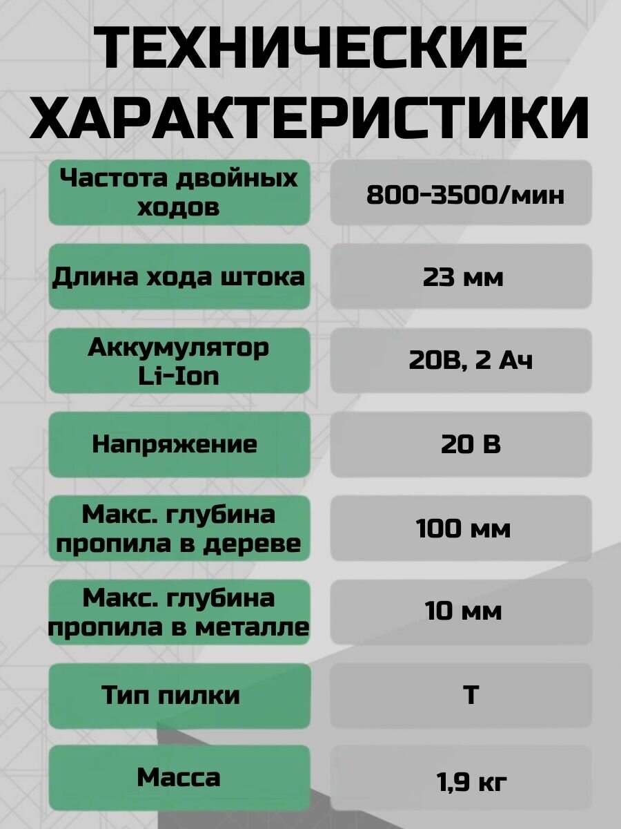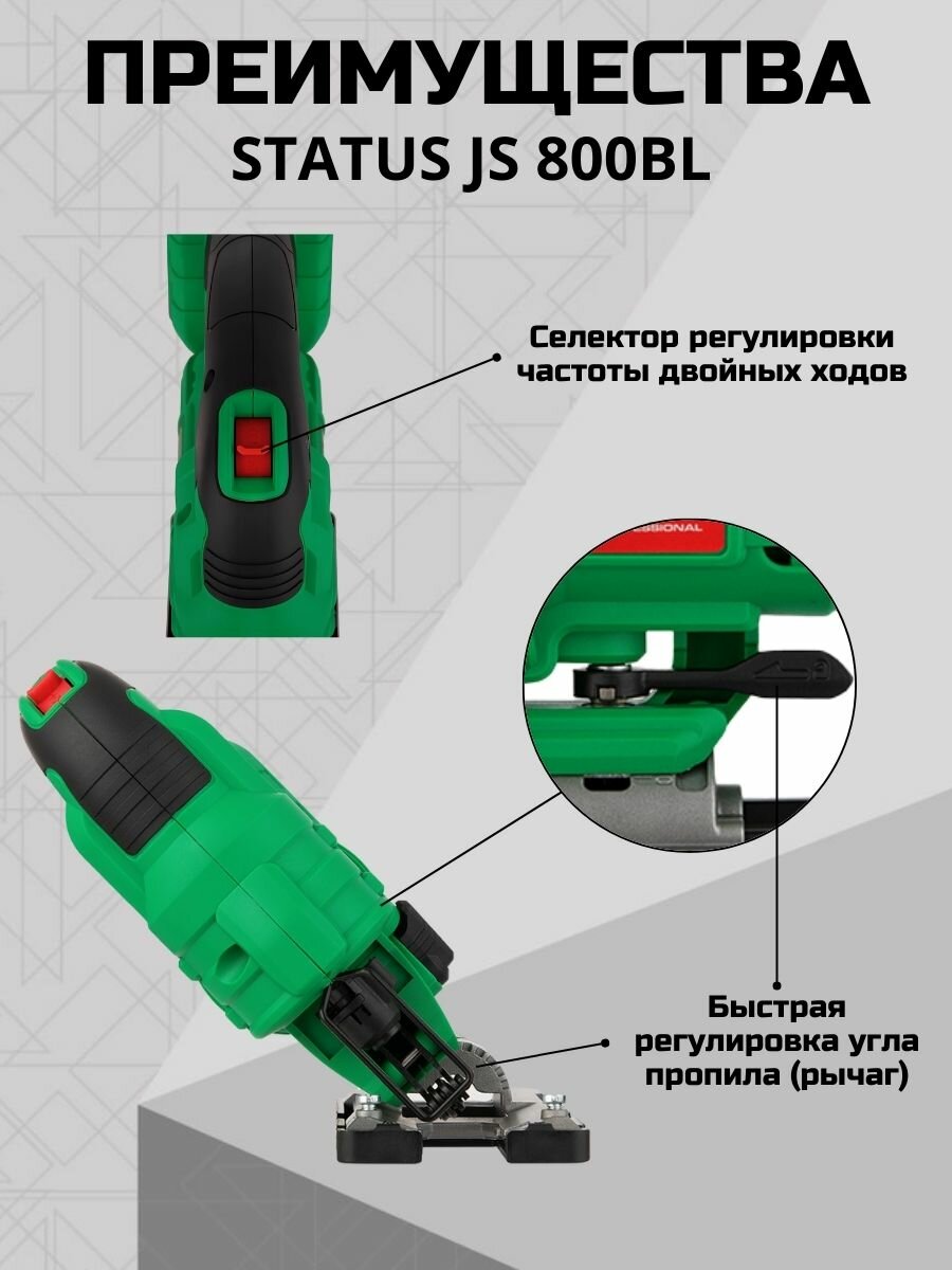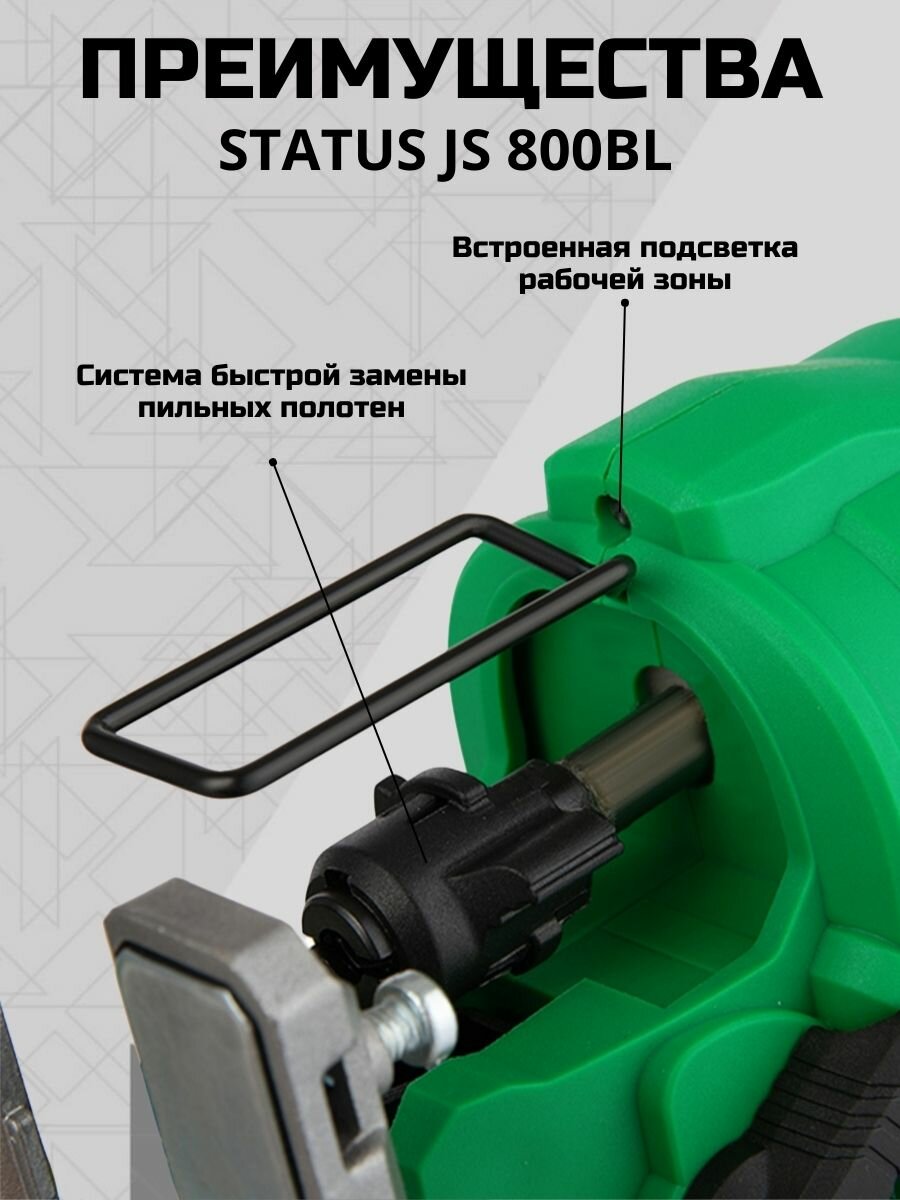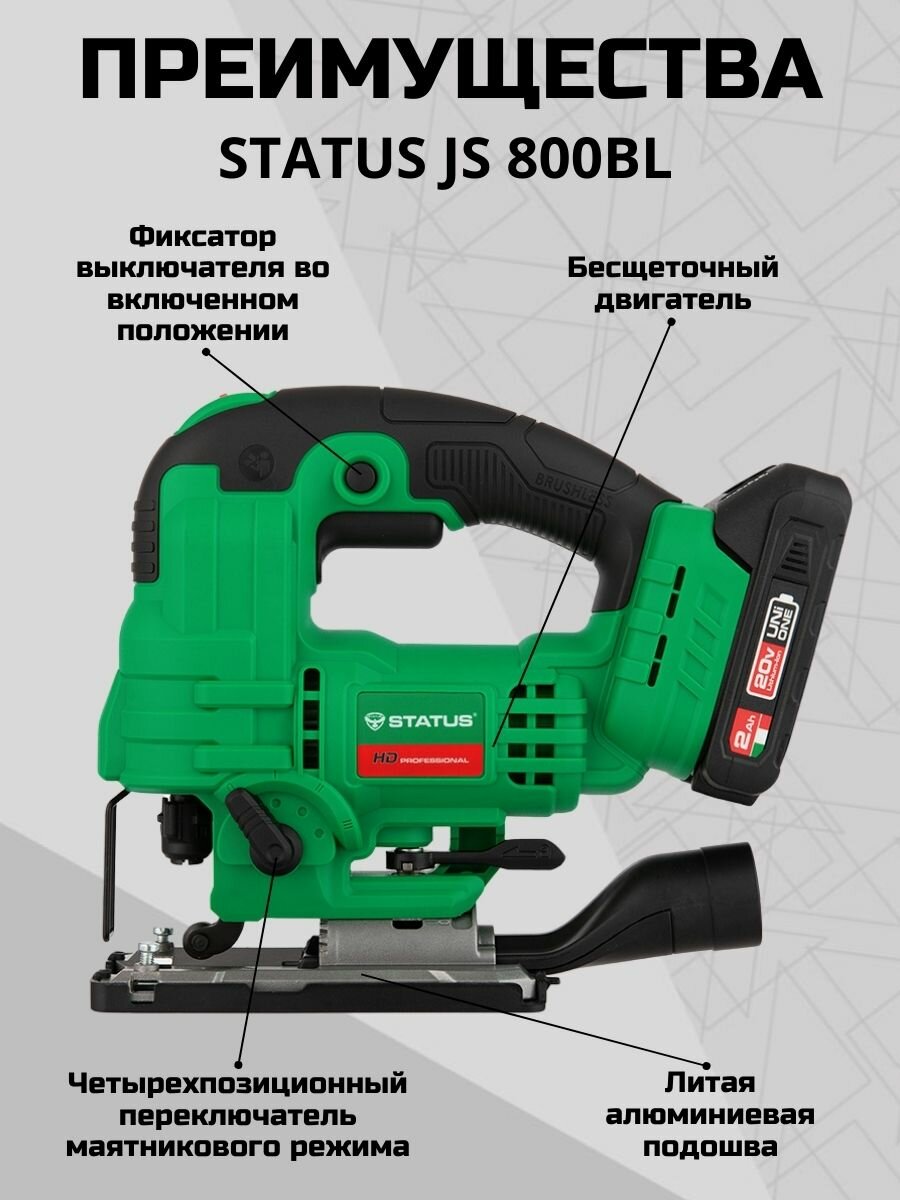 Аккумуляторный лобзик Status JS 800BL, с подсветкой, 20В, 2Ач, 3500 об/мин, 23мм, 1шт интересное: