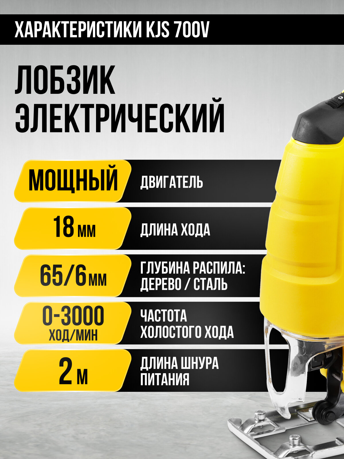Лобзик Kolner KJS 700V, желтый, без аккумулятора, мощность 700 Вт интересное:
