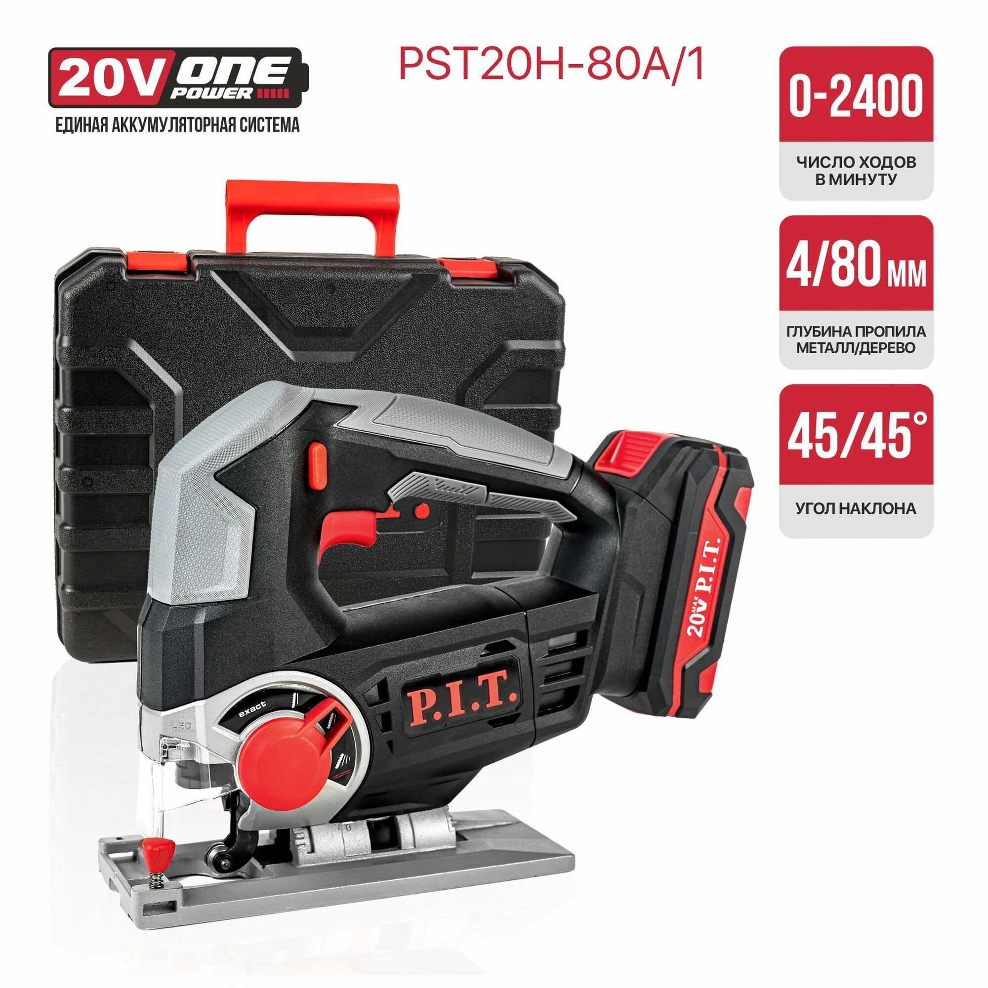 Купить Лобзик P.I.T PST20H-80A, LiIon, 20В, с подсветкой и защитой, с АКБ 2 А/ч и кейсом