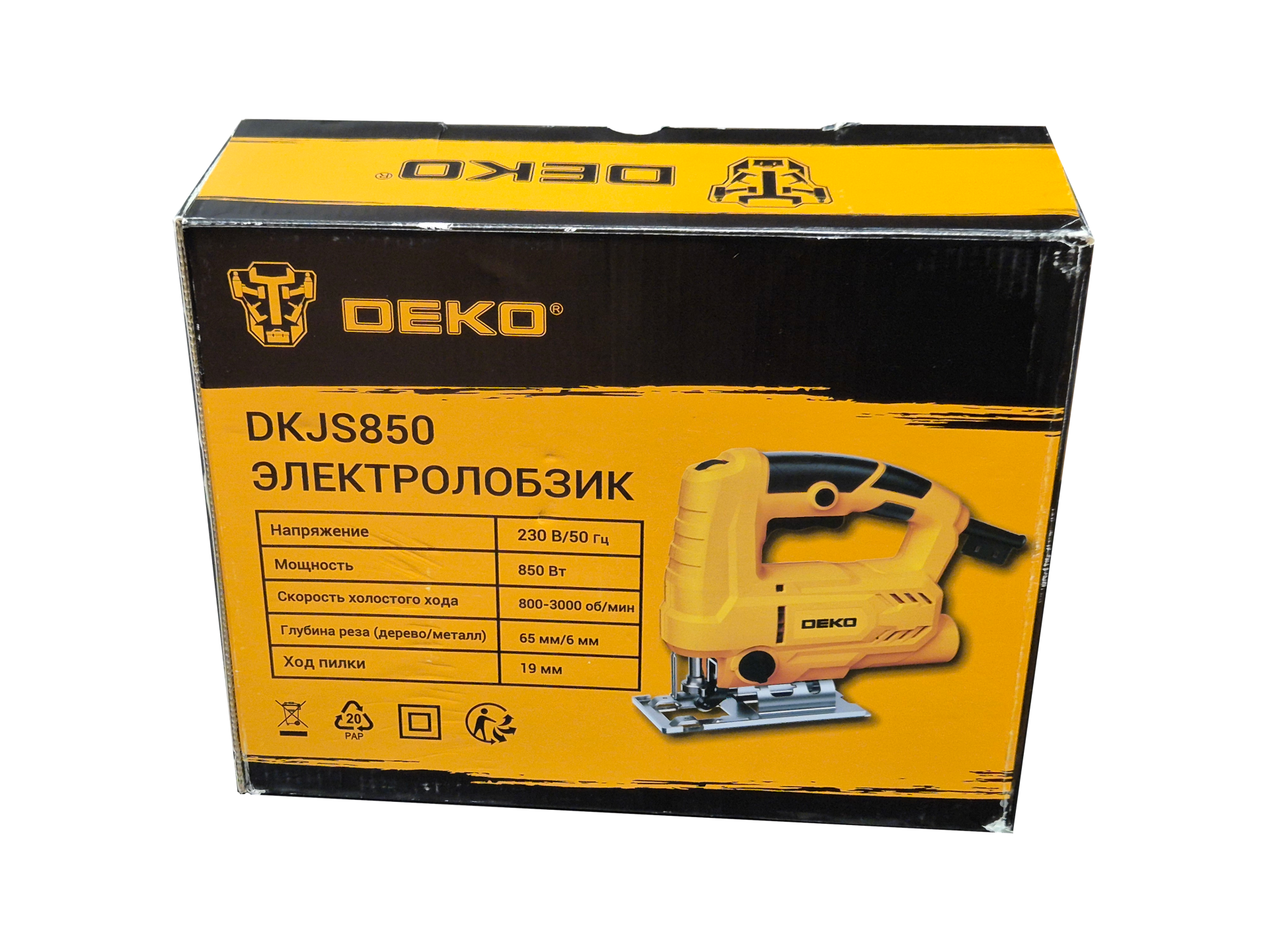Электролобзик DEKO DKJS850, 850 Вт, 800-3000 об/мин, глубина реза 65 мм/6 мм, регулировка скорости, ход пилки 19 мм. интересное: