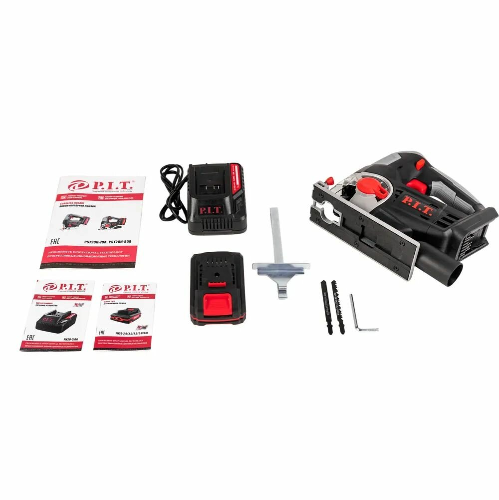 Купить Лобзик аккумуляторный P.I.T. PST20H-80A/2 (20В, пропил 80мм,0-2400об/мин, БЗП, 2акб Li-Ion 2Ач, ЗУ, кейс)