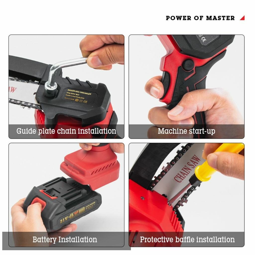 Купить 4-дюймовая 21V Аккумуляторная мини-бензопила Мини-электрическая портативная бензопила для обрезки дерева для резки сада