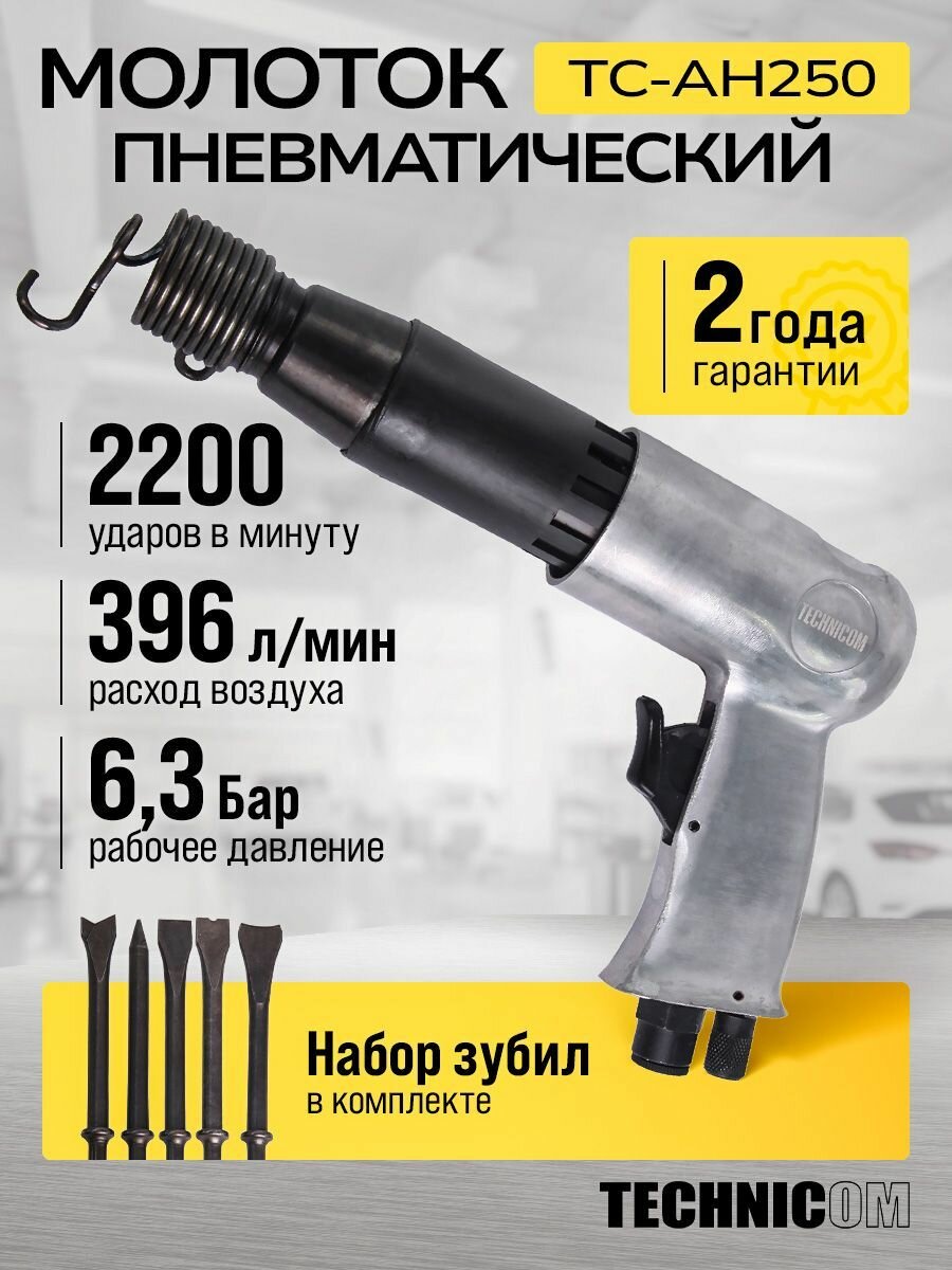Пневматический молоток Technicom TC-AH250, 6,3 Бар, 396 л/мин, 2000 уд/мин интересное: