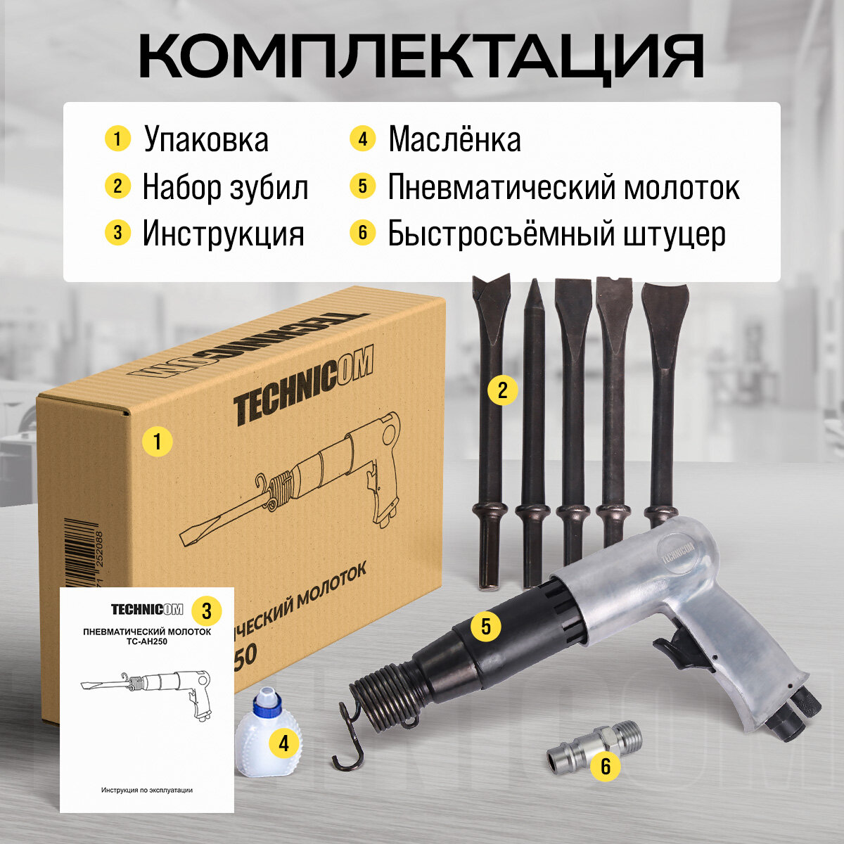 Купить Пневматический молоток Technicom TC-AH250, 6,3 Бар, 396 л/мин, 2000 уд/мин