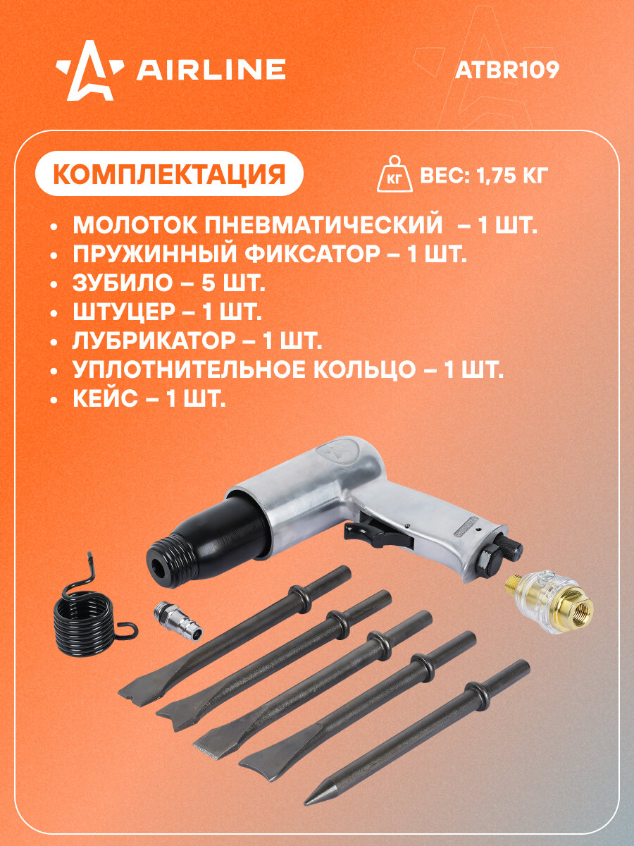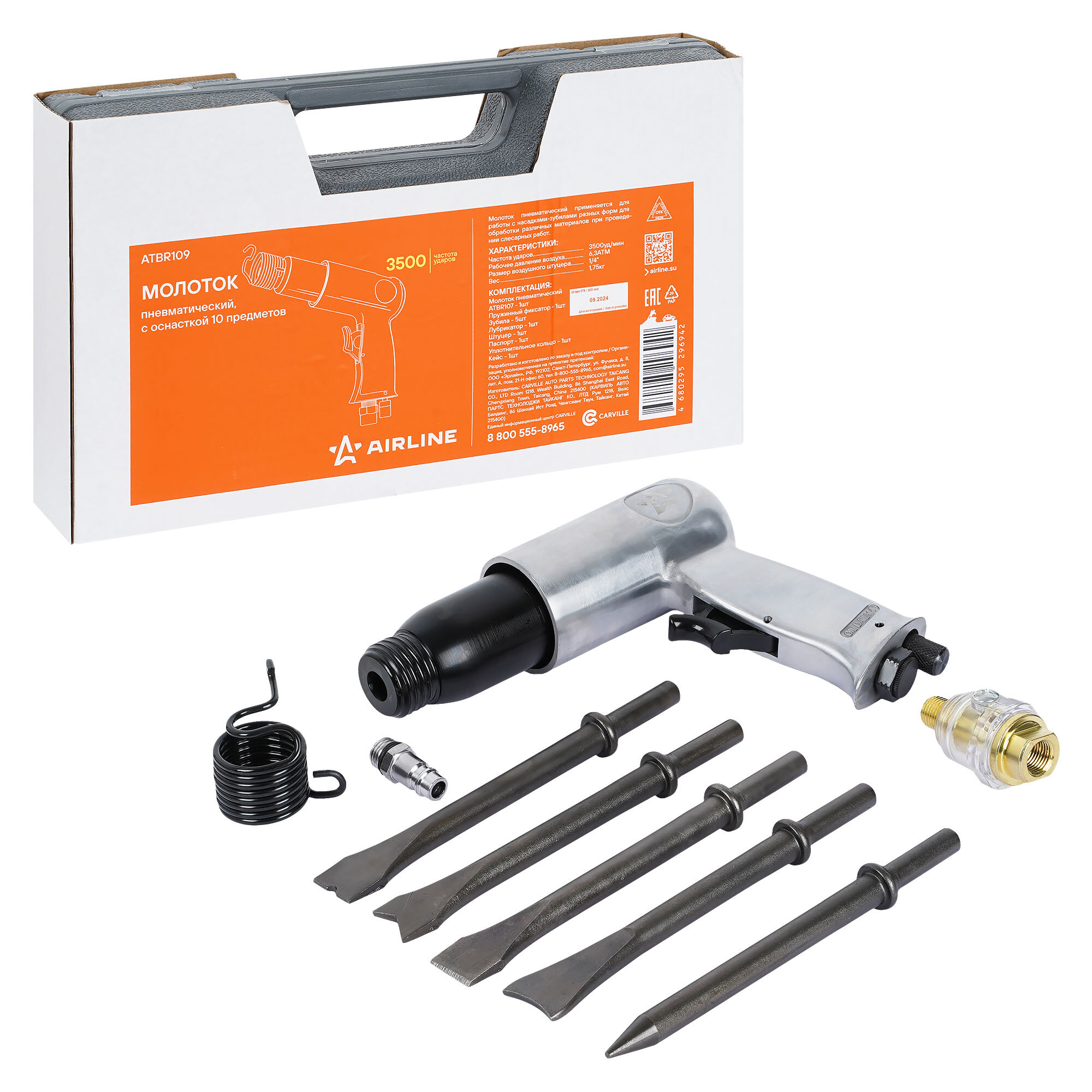 Купить Молоток пневматический 3500 уд/мин с оснасткой 10пр. кейс ATBR109 AIRLINE