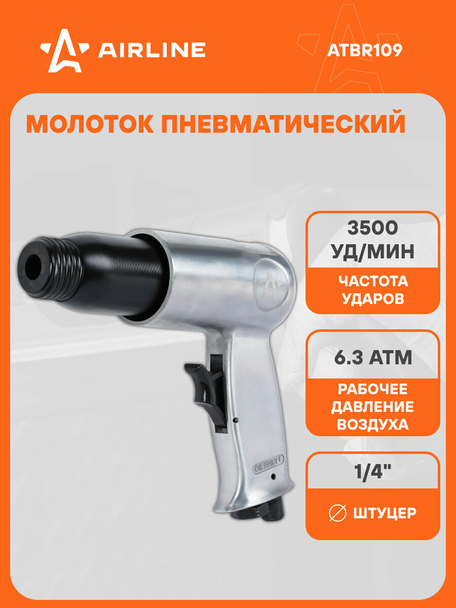 Молоток пневматический 3500 уд/мин с оснасткой 10пр. кейс ATBR109 AIRLINE интересное: