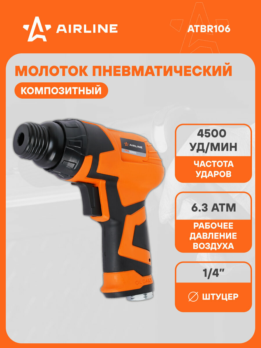 Молоток пневматический 4500 уд/мин PRO композитный ATBR106 AIRLINE интересное: