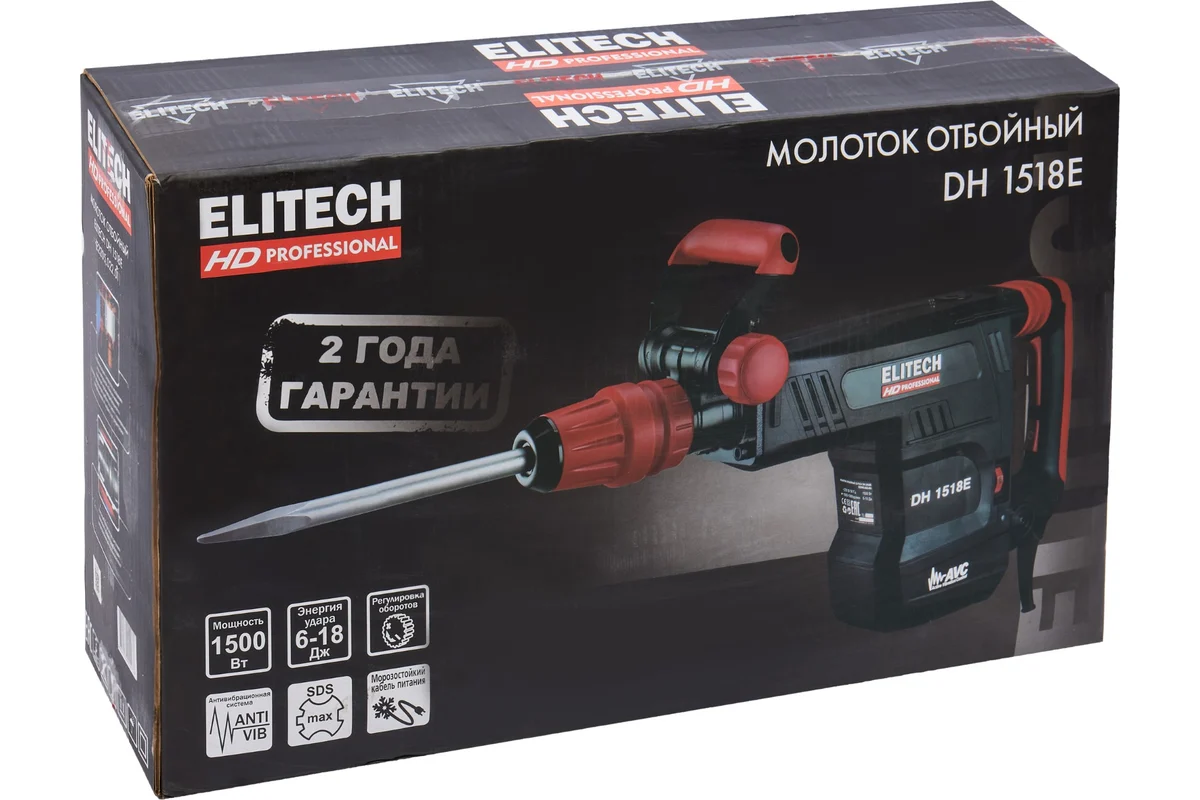 Молоток отбойный Elitech DH 1518E (E2205.022.01) HD 204003, 1500 Вт, SDS-Max, кейс. интересное:
