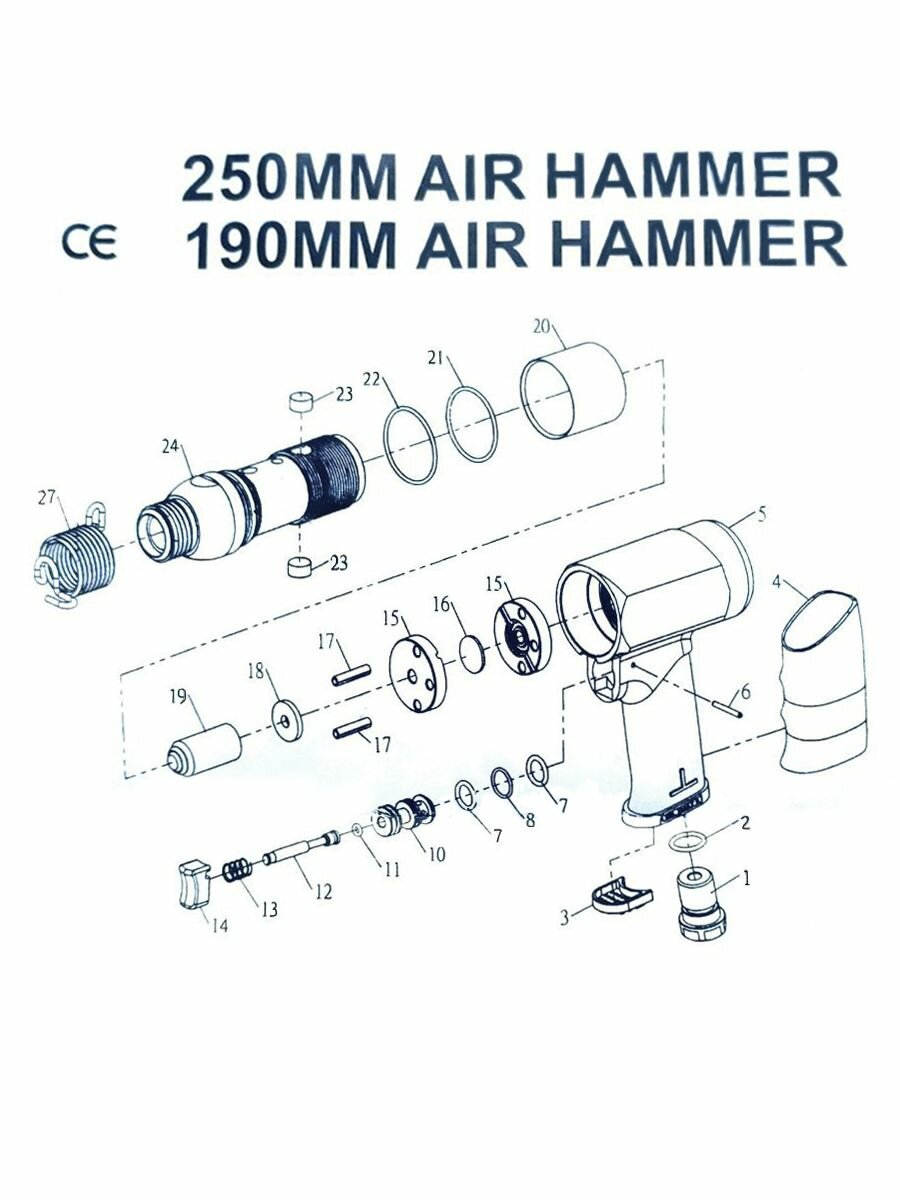 Пневматический молоток 4500 уд/мин 4 насадки 150 мм Automaster