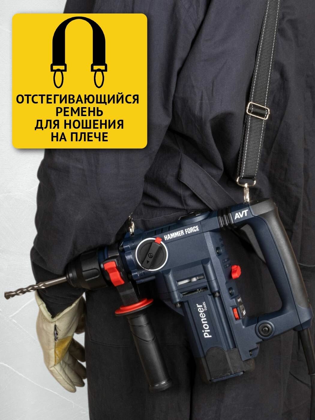 Перфоратор ударный Pioneer RH-E1100V-01C / 1100 Вт, SDS-plus, 5 Дж, 1200 об/мин, 5200 уд/мин, 6 уровней скорости интересное: