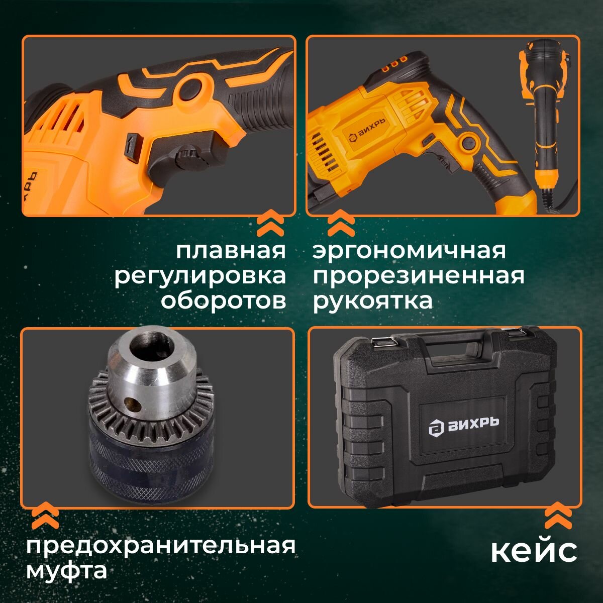 Перфоратор Вихрь П-А5/1.1, 1000 Вт, SDS-plus, 1100 об/мин, в кейсе интересное: