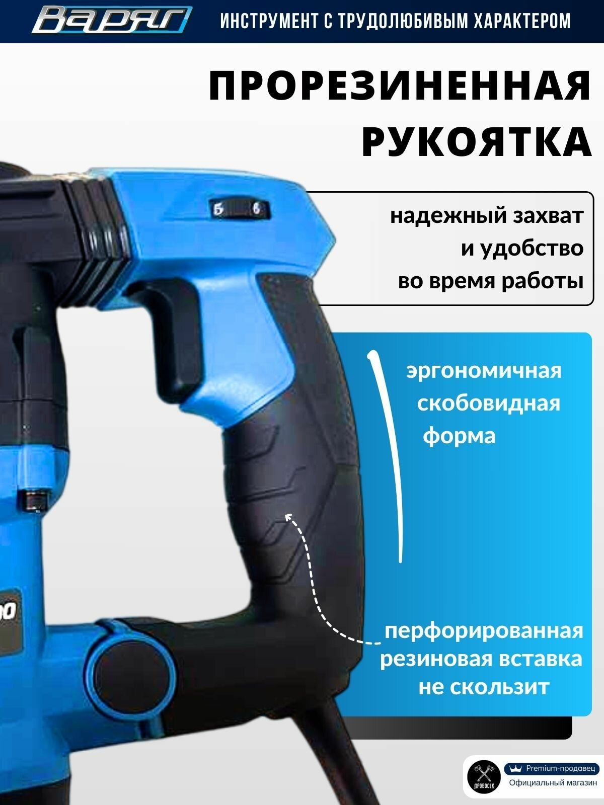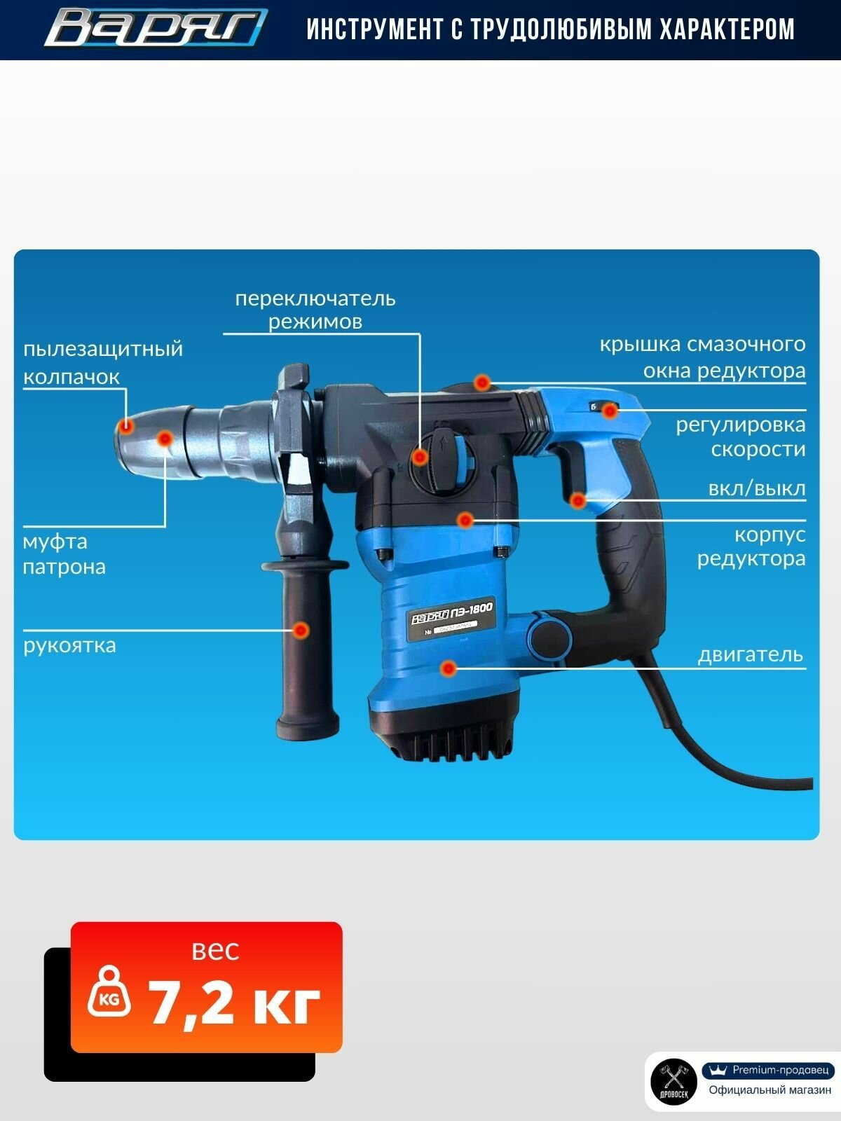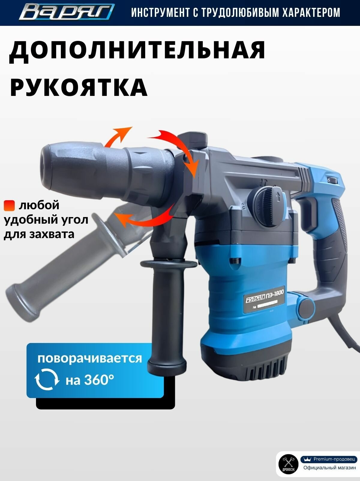 Перфоратор SDS-Plus Варяг ПЭ-1800 сетевой (1800Вт, 7 Дж, 4100 уд/мин) электрический, в кейсе, от сети, подарок мужчине интересное: