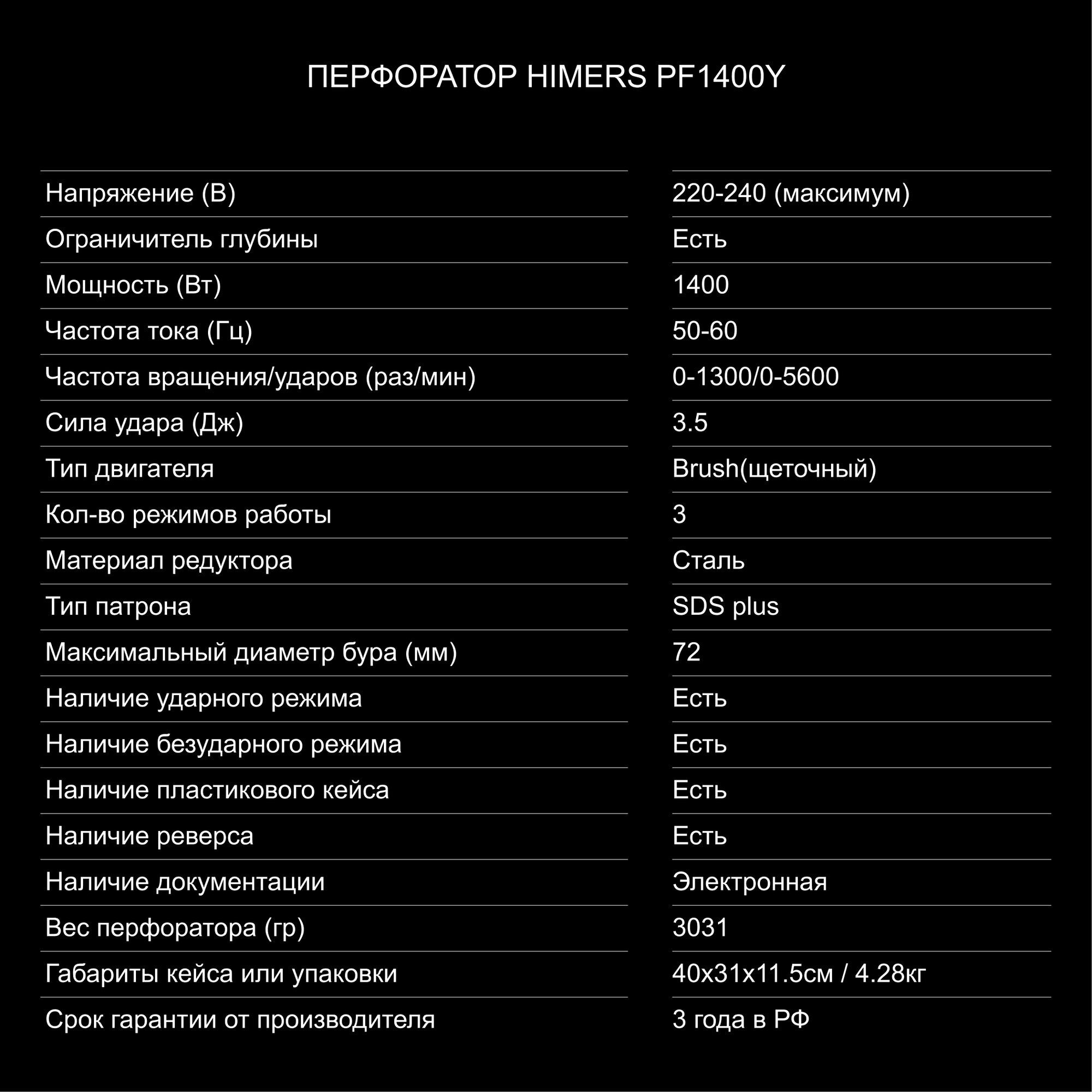 Перфоратор HIMERS "Yellow Special" PF1400Y, сетевой, 1400Вт, с кейсом SDS plus патрон интересное: