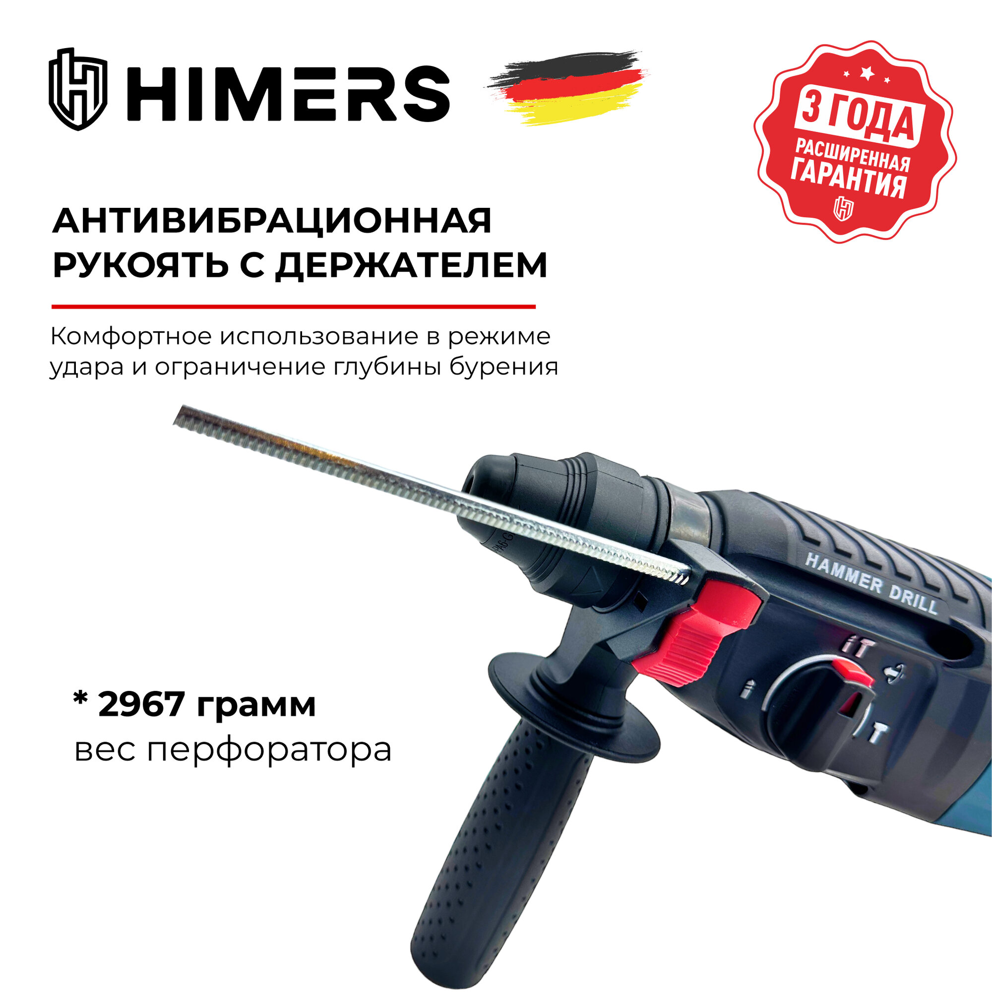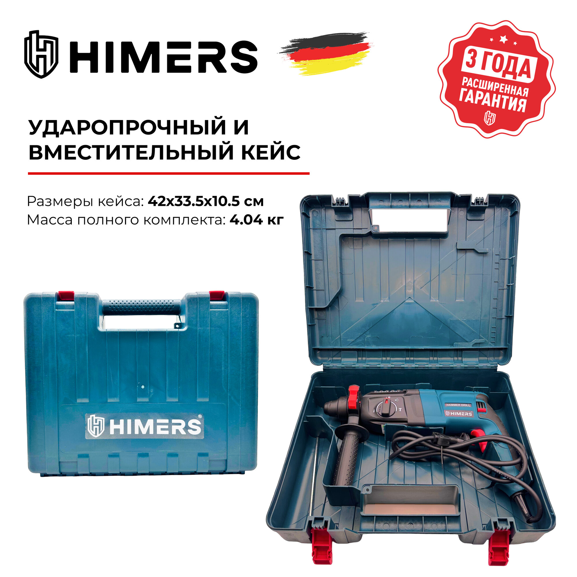 Перфоратор HIMERS PF1050G сетевой 1050 Вт, 3 ДЖ, SDS Plus, 1300 об/мин, 5600 уд/мин, Кейс / для сверления, долбления, закручивания, с ограничителем глубины интересное: