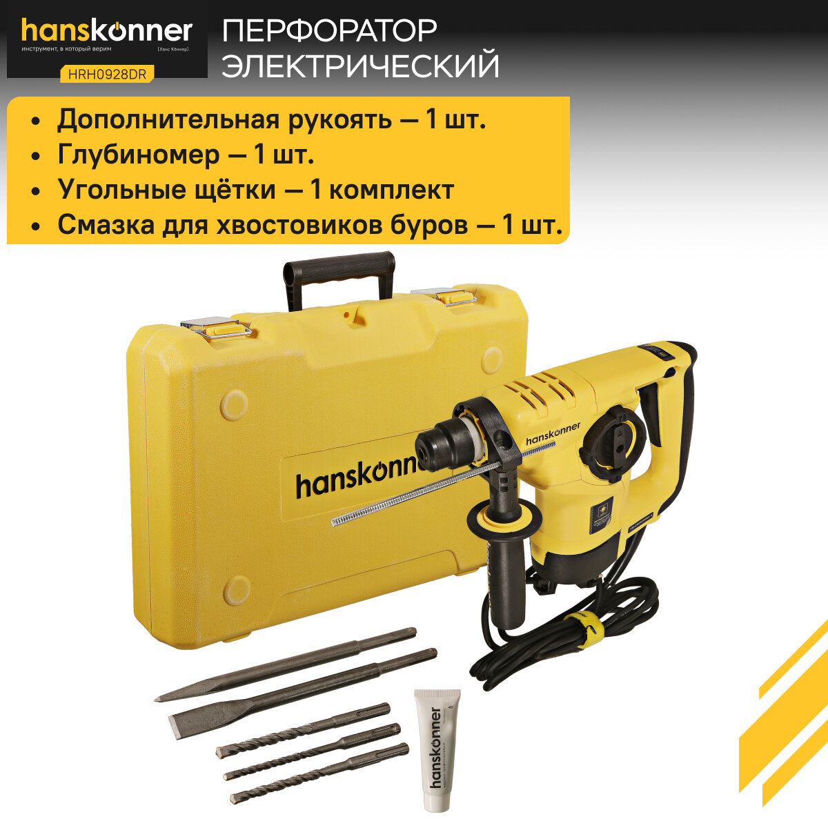 Перфоратор Hanskonner HRH0928DR 980Вт, 28мм , 3.8Дж, 0-4500уд/мин, ВЕРТИКАЛ, 4 м. кабель, кейс интересное: