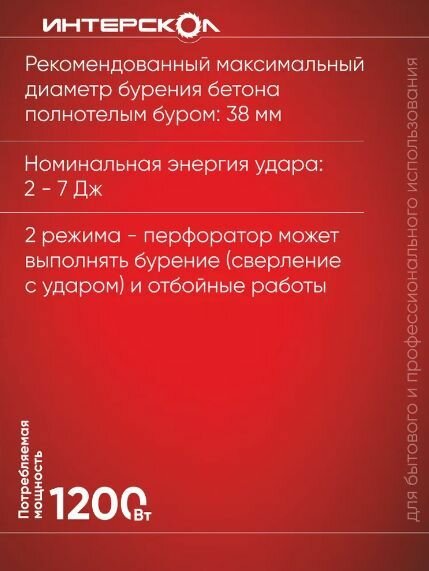 Перфоратор Интерскол П-38/1200ЭВ патрон: SDS-max уд:7Дж 1200Вт (кейс в комплекте) интересное: