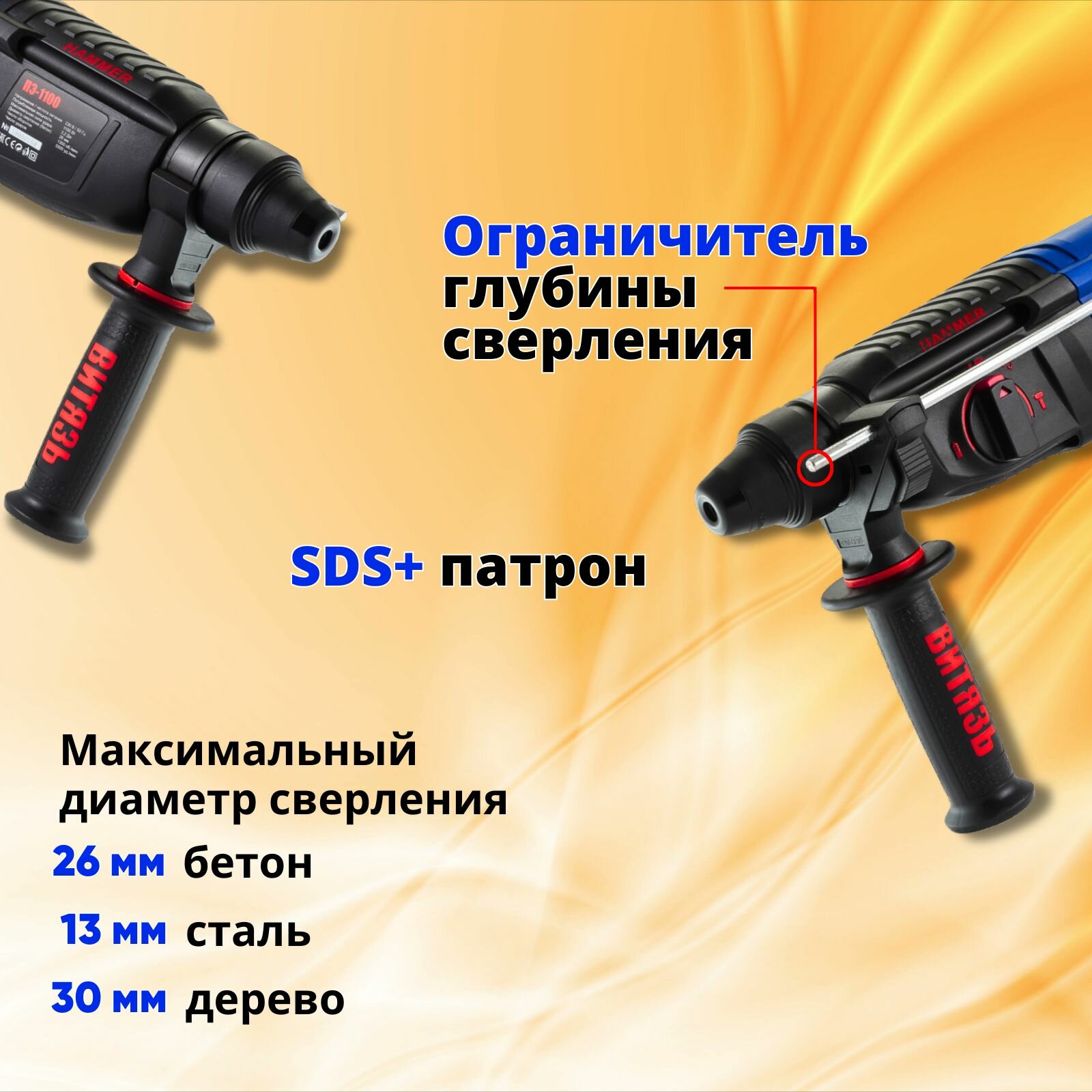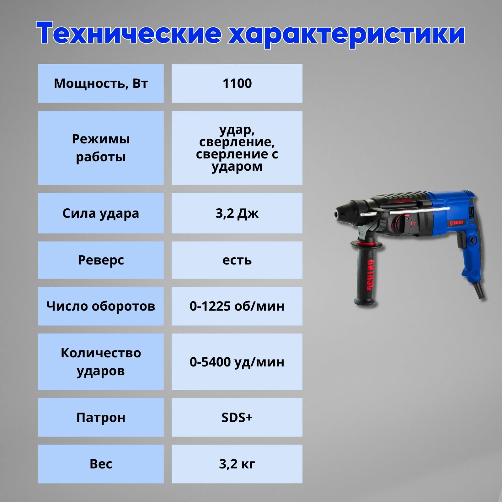 Перфоратор электрический Витязь ПЭ-1100, 3.2 Дж, SDS +(Пика, Зубило, Дополнительный патрон, Адаптер, Кейс) интересное: