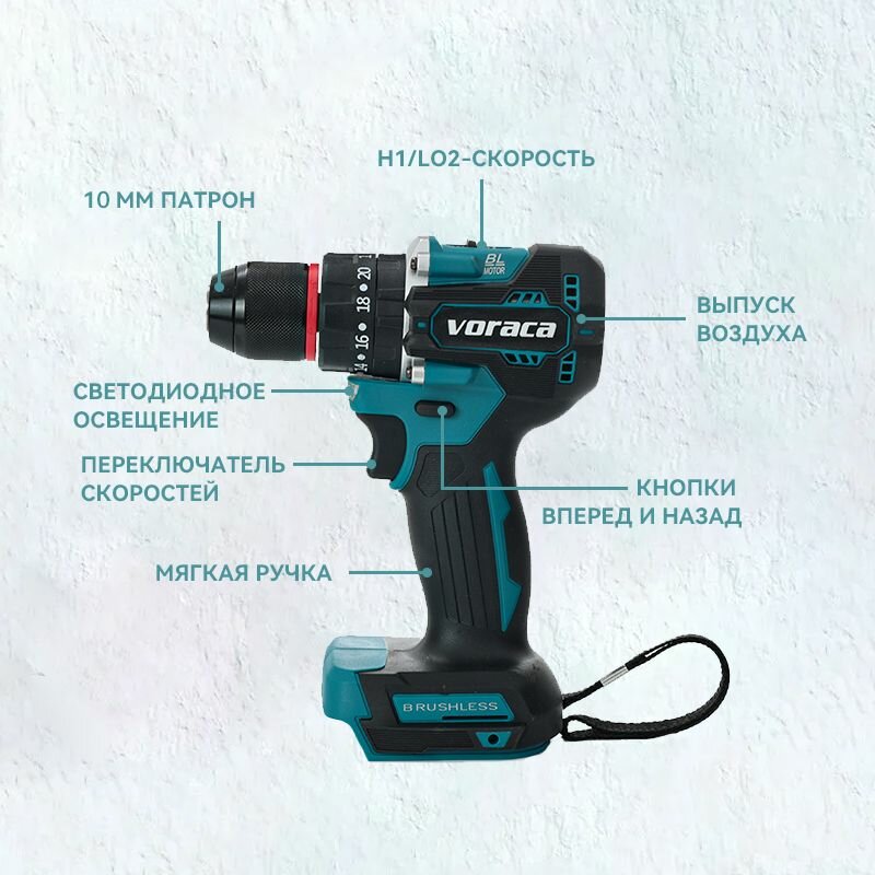 Набор инструментов Voraca, ударный режим, кейс, 2 аккумулятора интересное: