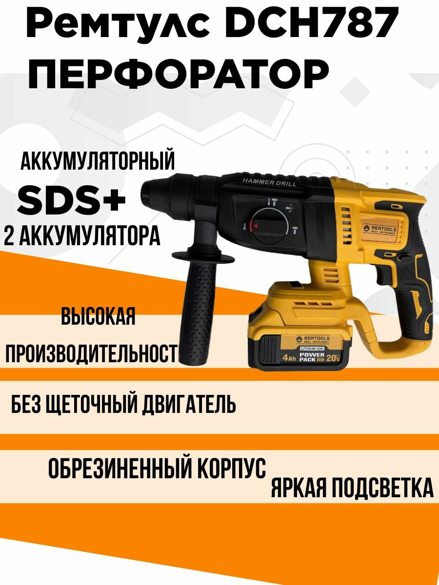 Перфоратор Remtools DCH787NT, с кейсом TESTAK, SDS-Plus, 18В, 21Дж интересное: