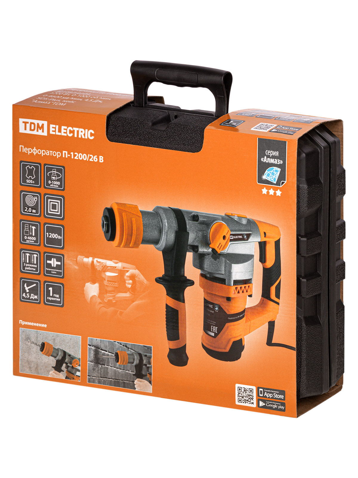 Перфоратор Tdm Electric П-1200/26 В, 1200 Вт, 0-1000 об/мин, 0-4600 уд/мин, 4.5 Дж, SDS-Plus, кейс "Алмаз", SQ1087-0104 интересное:
