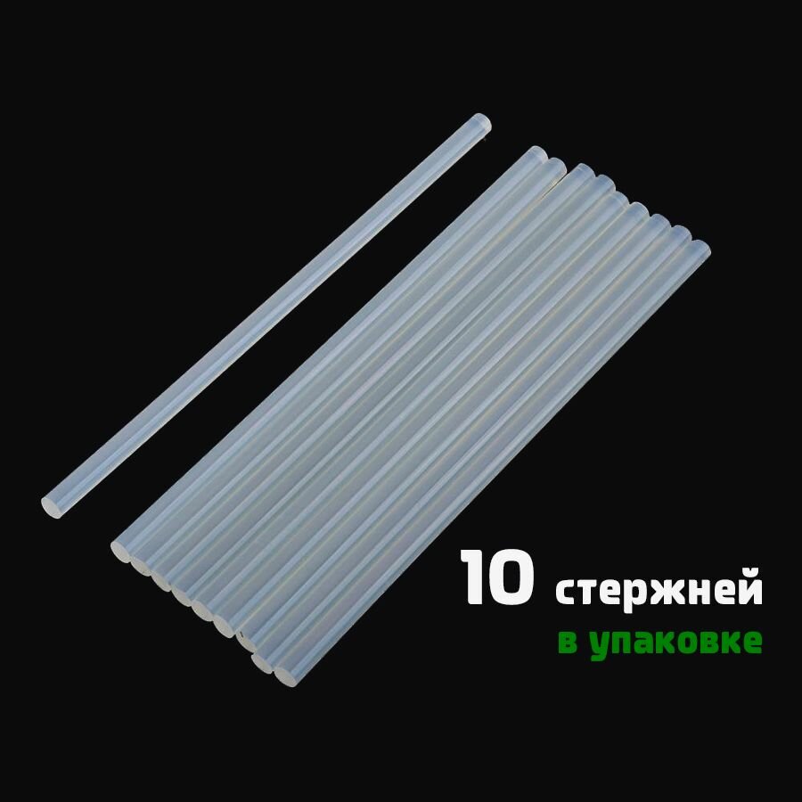 Клеевые стержни для клеевого пистолета 11 мм х 270 мм, термоклей, прозрачные 10 штук.