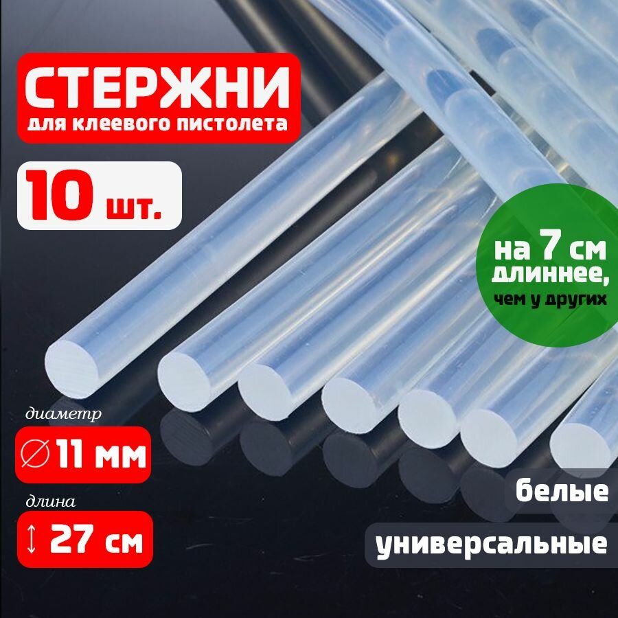 Купить Клеевые стержни для клеевого пистолета 11 мм х 270 мм, термоклей, прозрачные 10 штук.