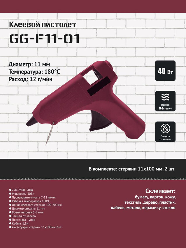 Клеевой пистолет 11 мм электрический Fusion tools GG-F11-01, 40 Вт интересное: