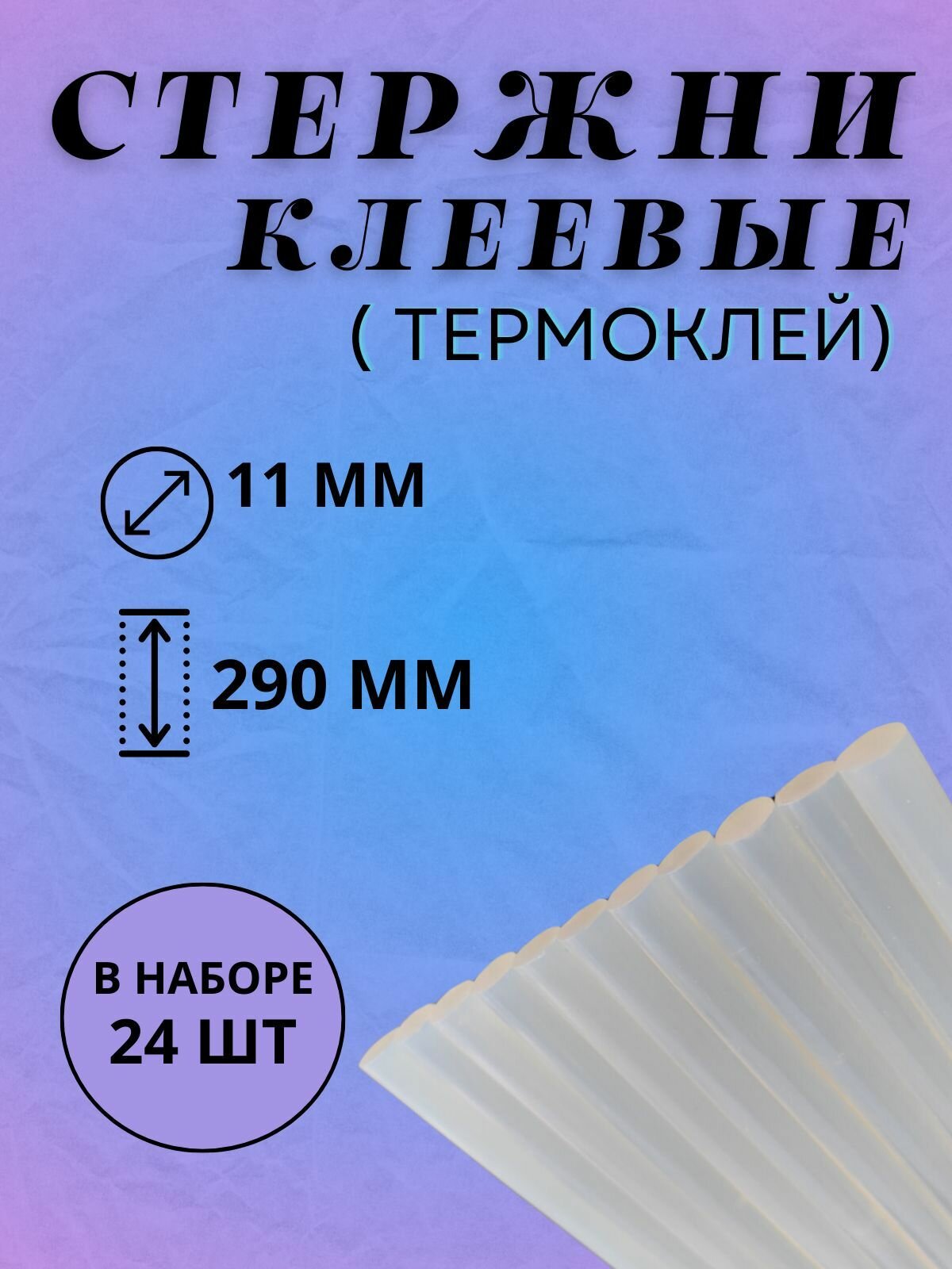 Клеевые стержни для клеевых пистолетов, прозрачные, диаметр 11мм, длина 290мм, 24 штуки, интересное: