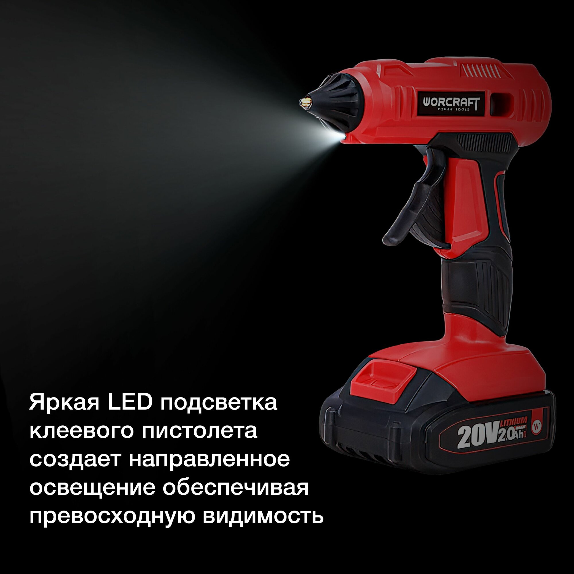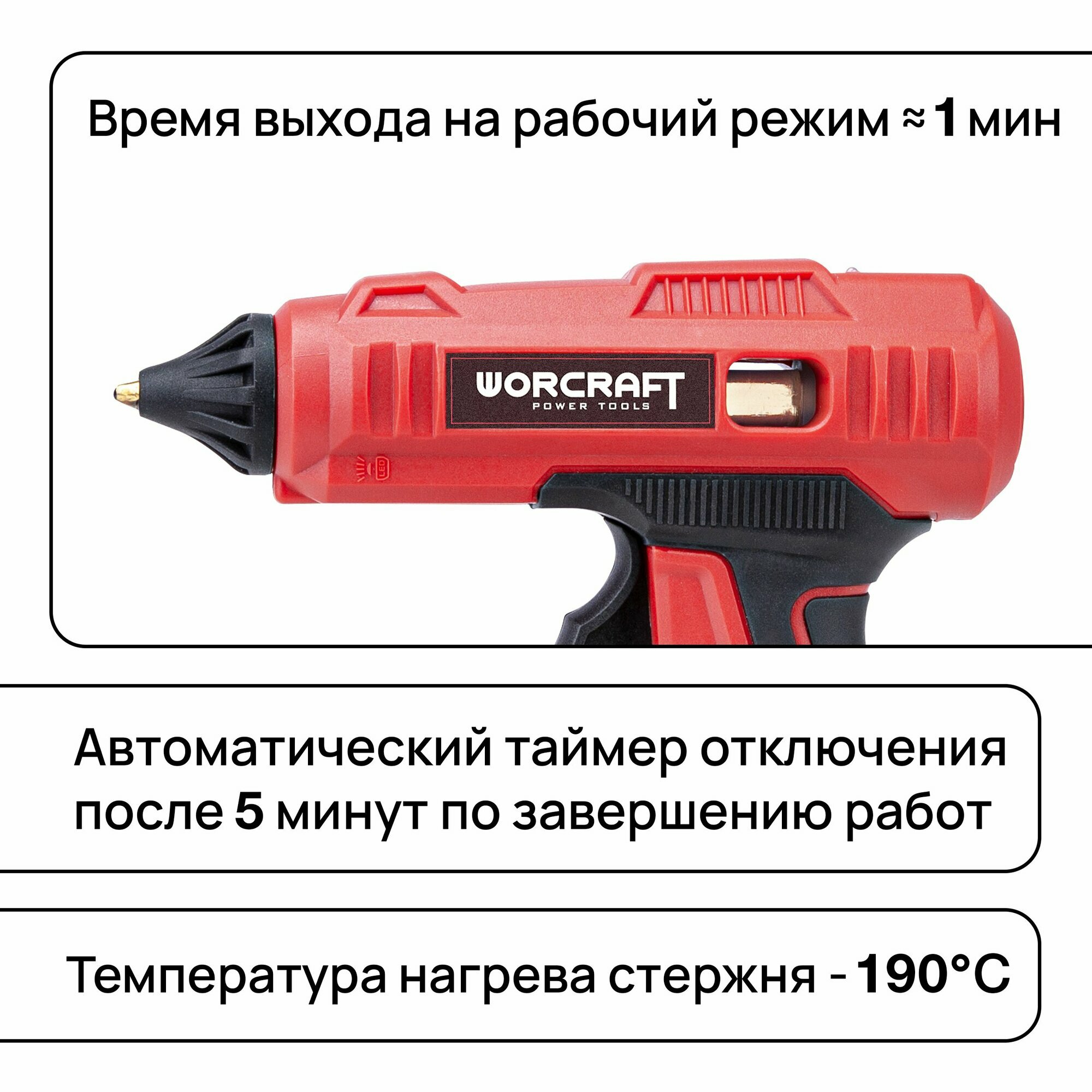 WORCRAFT Клеевой пистолет аккумуляторный 190 градусов 15 гр/мин и 3 стержня, Без АКБ и СЗУ. Термопистолет клеевой. интересное: