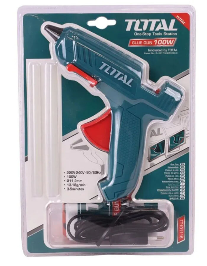 Купить Термоклеевой пистолет 100 Вт с двумя клеевыми стержнями по 150 мм TOTAL