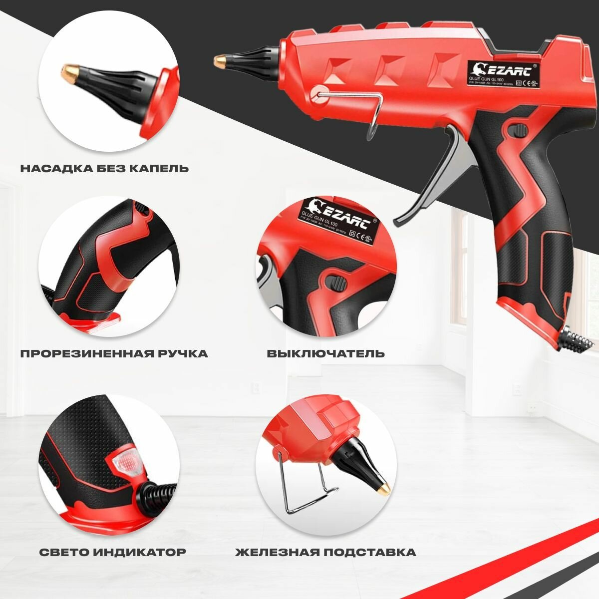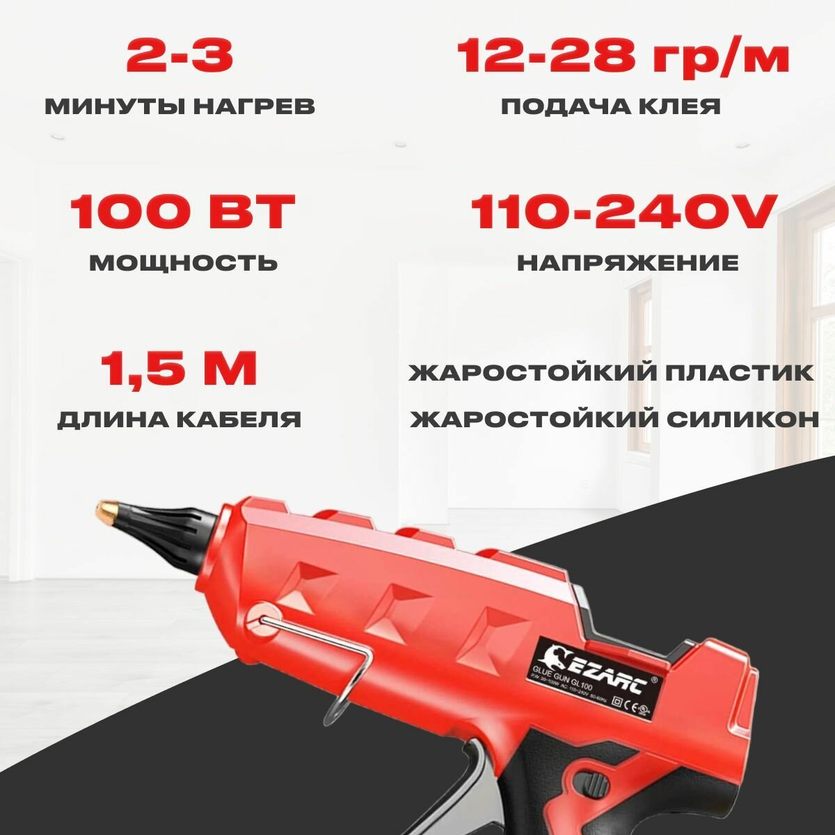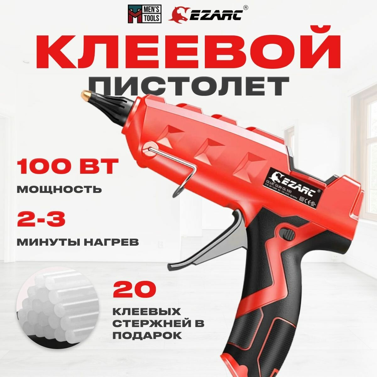 Клеевой пистолет EZARC мощностью 100 Вт + 20 термоклеевых стержней 11 мм интересное:
