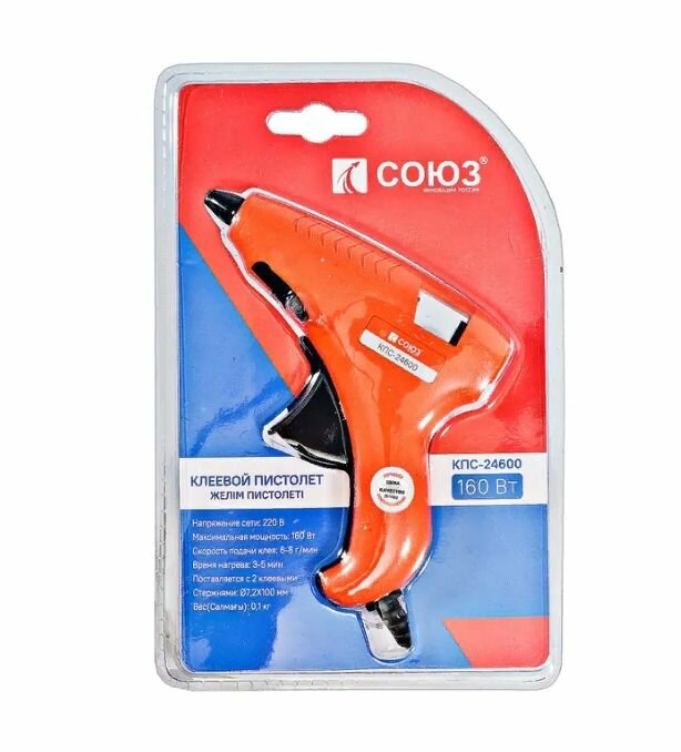 СОЮЗ Клеевой пистолет 160 Вт, 7 мм, скорость подачи клея 6-8 г/мин, арт. КПС-24600 интересное:
