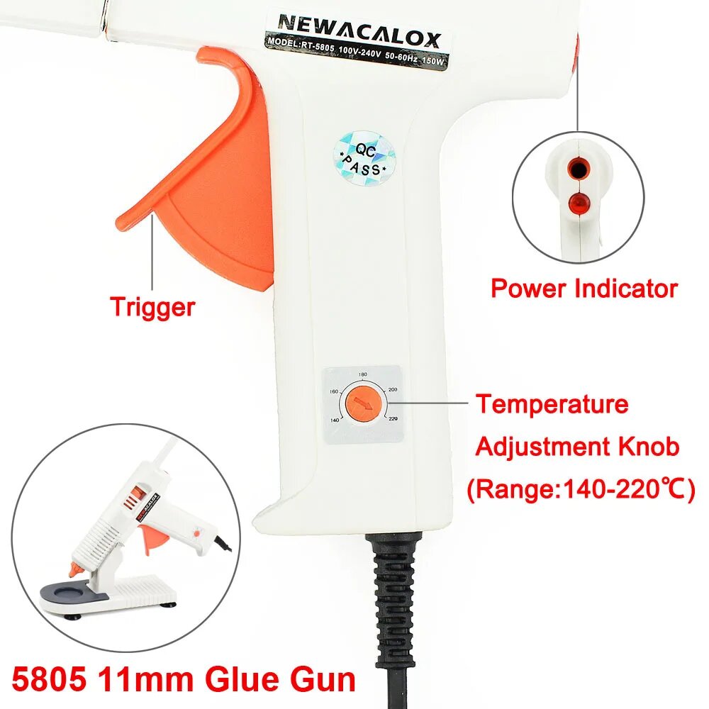 NEWACALOX термоклеевой пистолет 150 Вт белый, 5805 Glue Gun Stand, 150W, EU интересное: