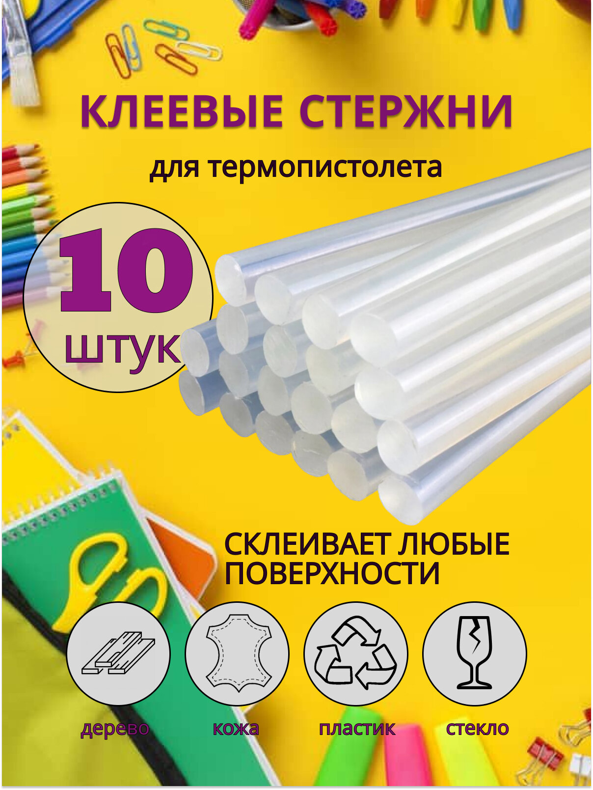 Купить Набор клеевых стержней ДИМАХ, для рукоделия и ремонта, 10 штук, 7x200мм