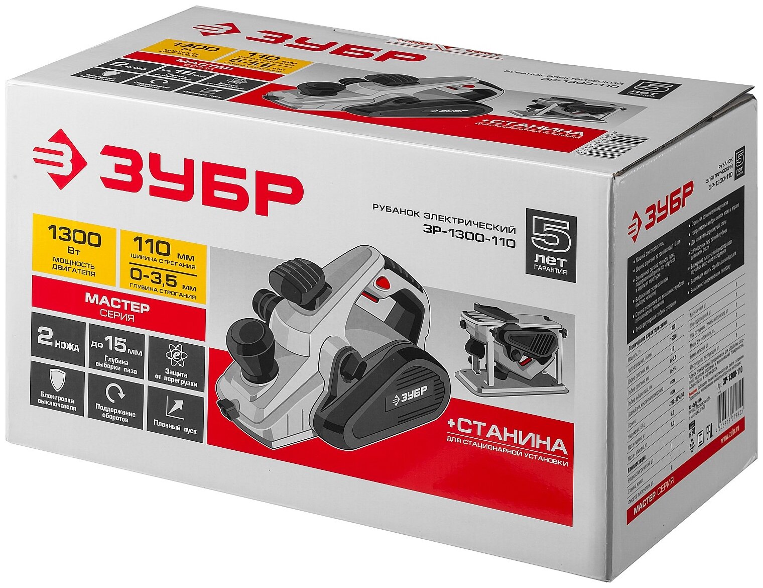 Сетевой электрорубанок ЗУБР ЗР-1300-110, со стационарным креплением, без аккумулятора, 1300 Вт, коробка интересное: