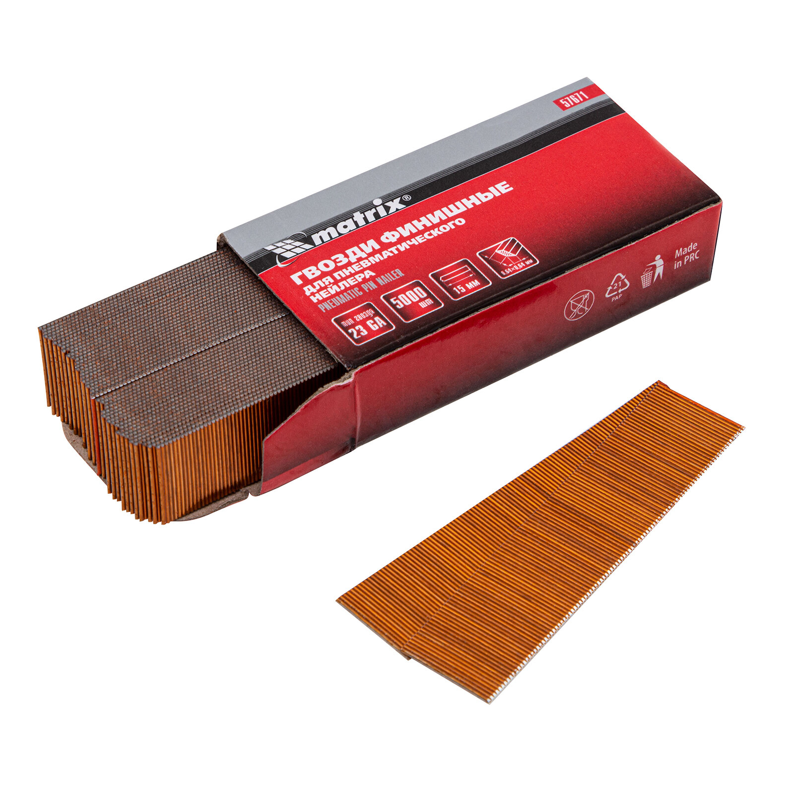 Гвозди финишные Matrix (шпильки) 23GA для пн. нейлера финишного диам. 0,64 мм длина -15 мм, 5000 шт 57671 интересное: