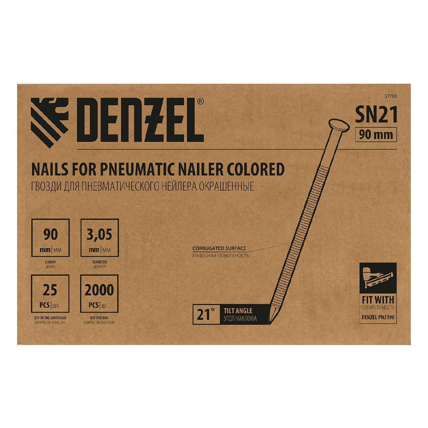 Гвозди для пневматического нейлера Denzel (крашен.), длина - 90 мм, диам. - 3,05 мм, 2000 шт. 57700