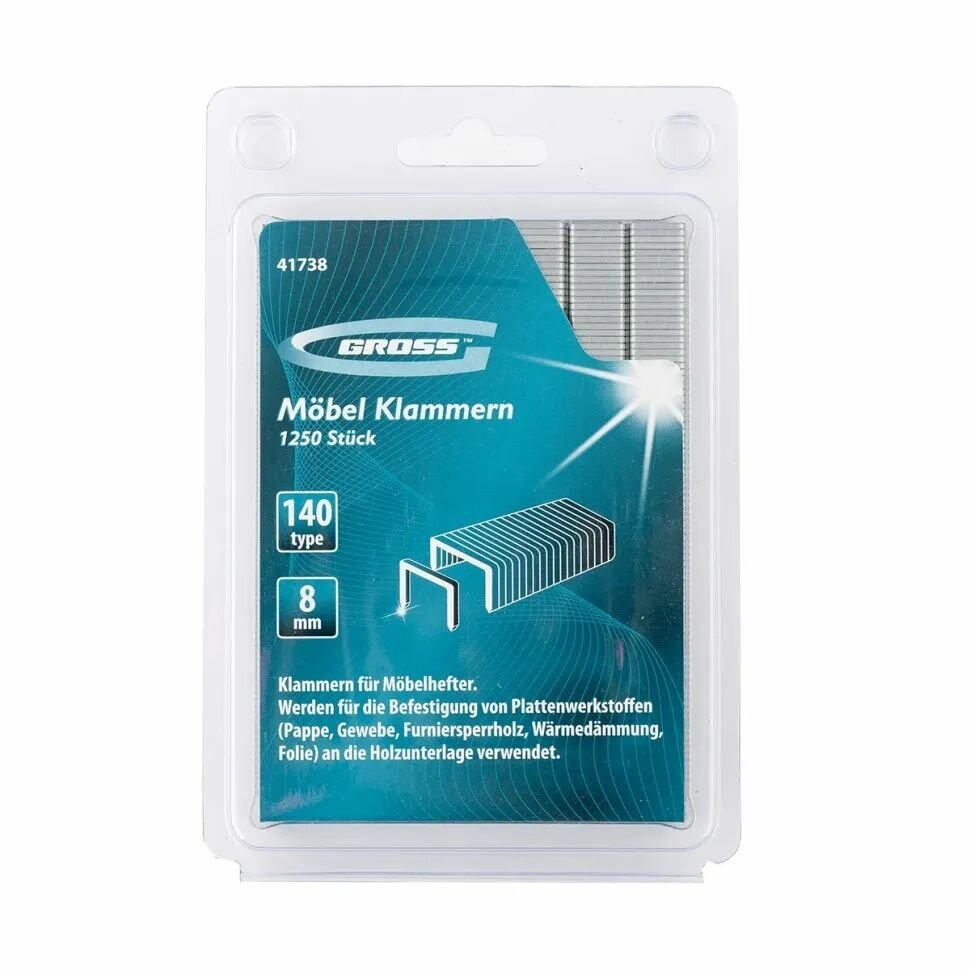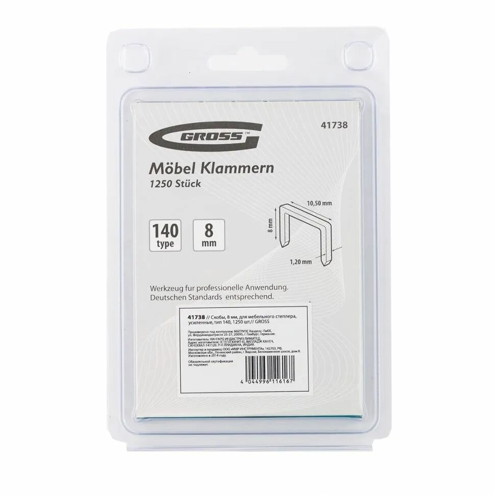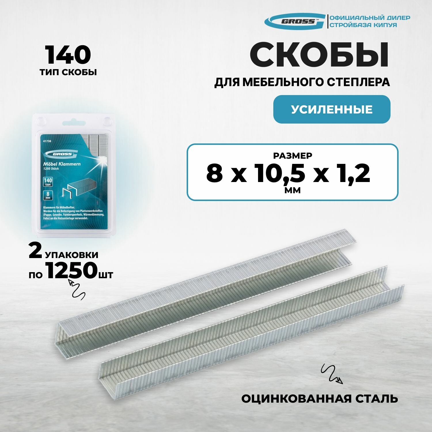 Купить Скобы, 8 мм, для мебельного степлера усиленные, тип 140, 2500 шт Gross (2 упак. по 1250 шт)