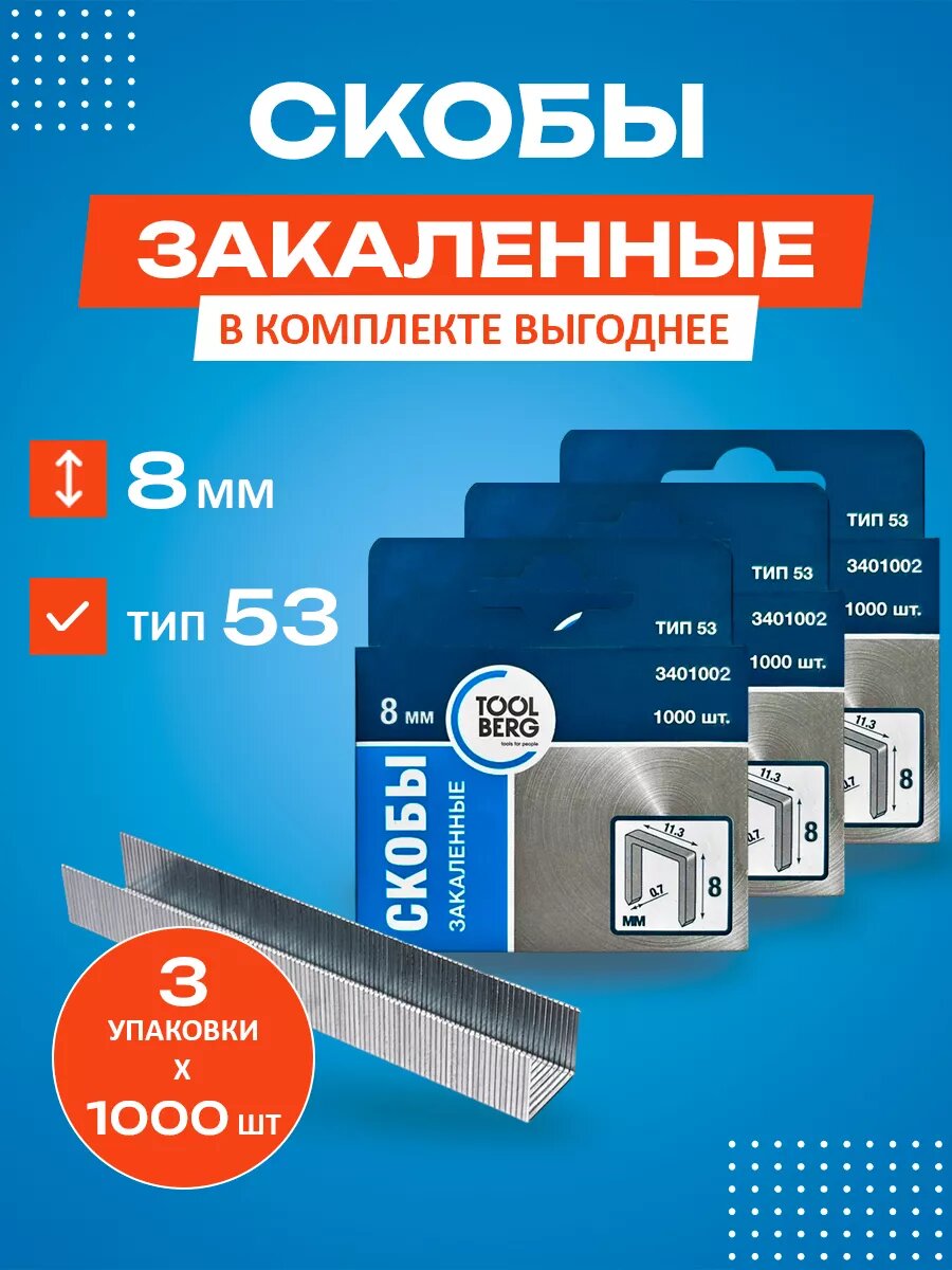 Скобы Toolberg, 8 мм тип 53, закаленные, 1000шт
