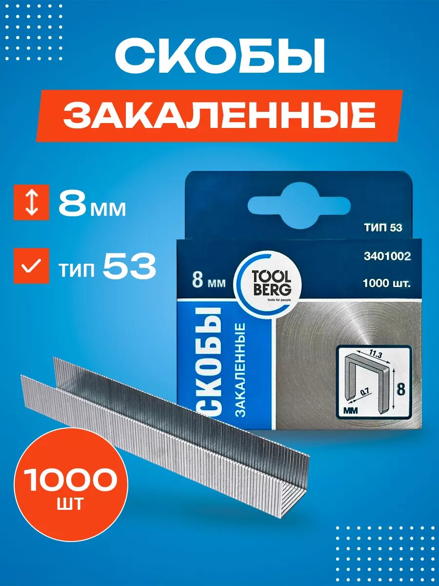 Купить Скобы Toolberg, 8 мм тип 53, закаленные, 1000шт