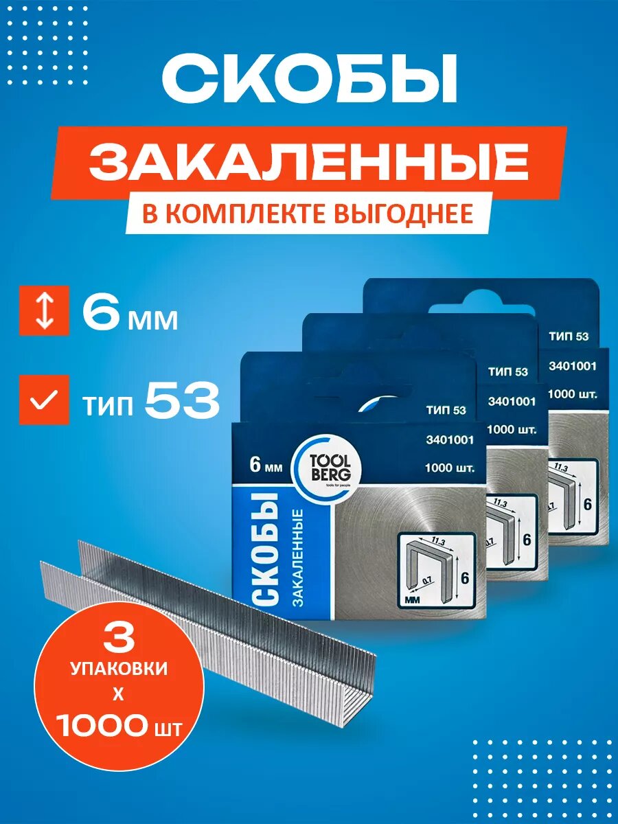 Купить Комплект скобы Toolberg, строительный степлер, 6мм, тип53, 3000 шт