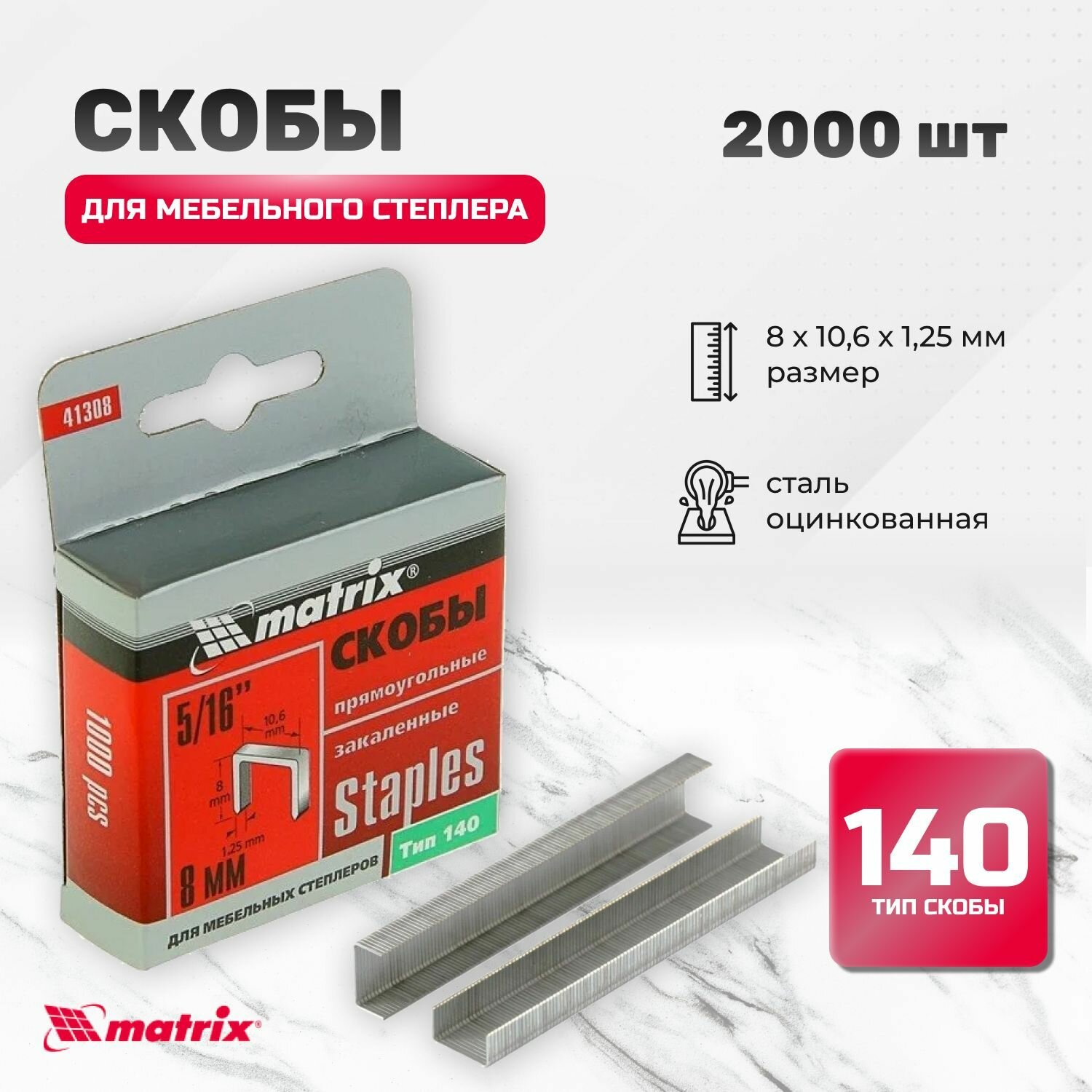 Скобы, 8 мм, для мебельного степлера, закаленные тип 140, 2000 шт Matrix ( 2 упак. по 1000 шт) интересное: