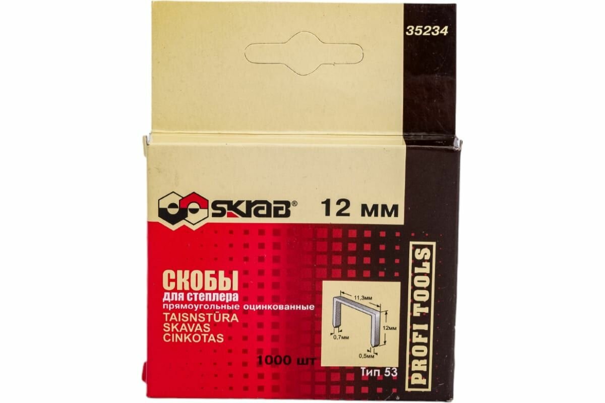 Скобы Skrab 35234 для степлера прямоугольные оцинкованные 12 мм, тип 53 / 1000 шт. интересное: