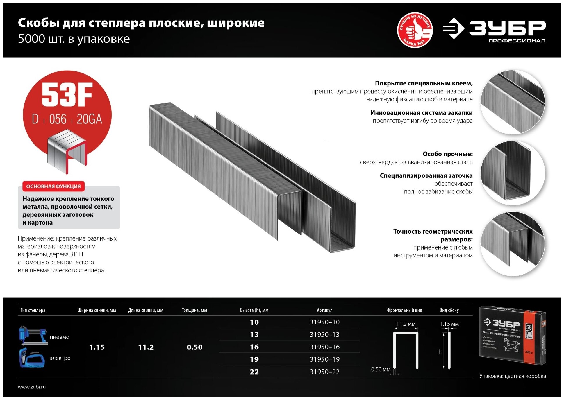 ЗУБР тип 20ga (53f/d/056) 13 мм, 5000 шт, скобы для степлера, профессионал (31950-13) интересное: