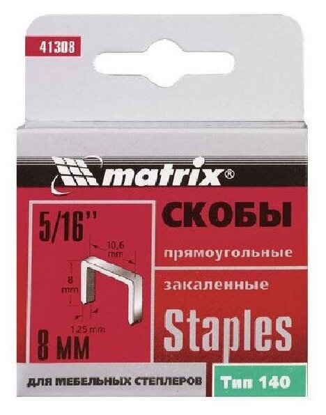 Купить Скобы 8 мм для мебельного степлера закаленные тип 140, 1000 шт.