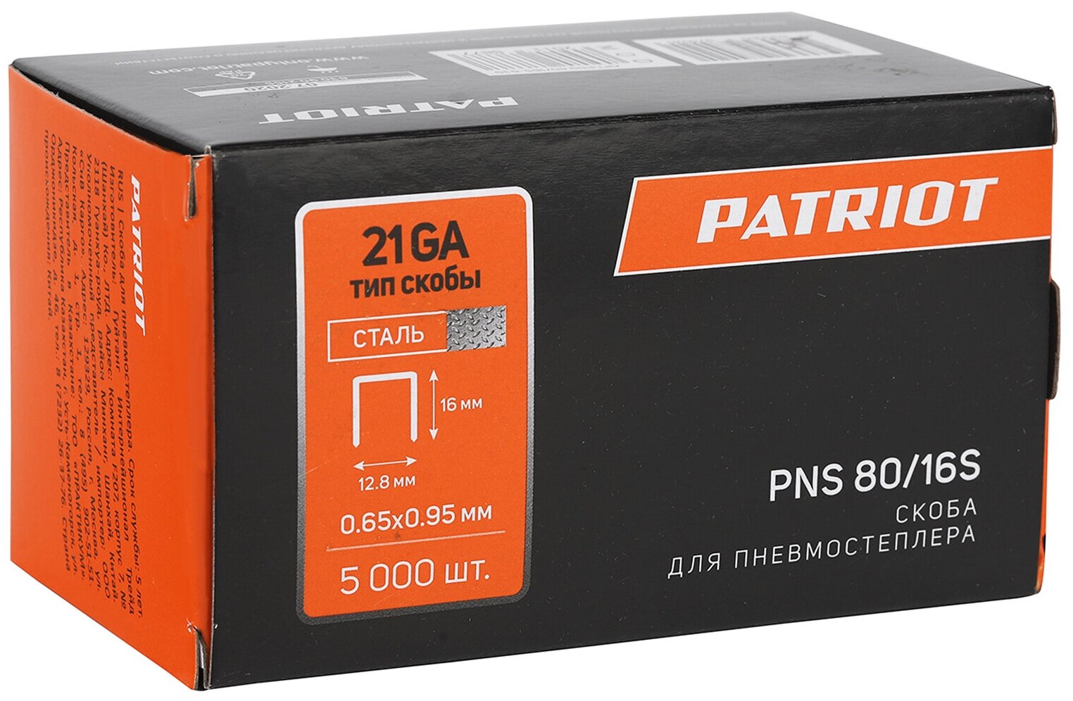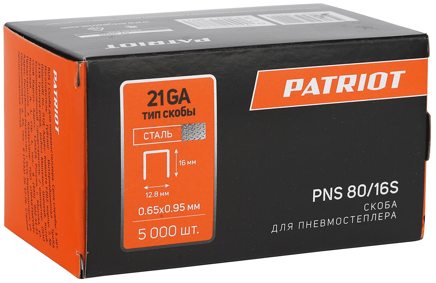 Купить Скобы PATRIOT для степлера, 830902155, 16 мм, 5000 шт.