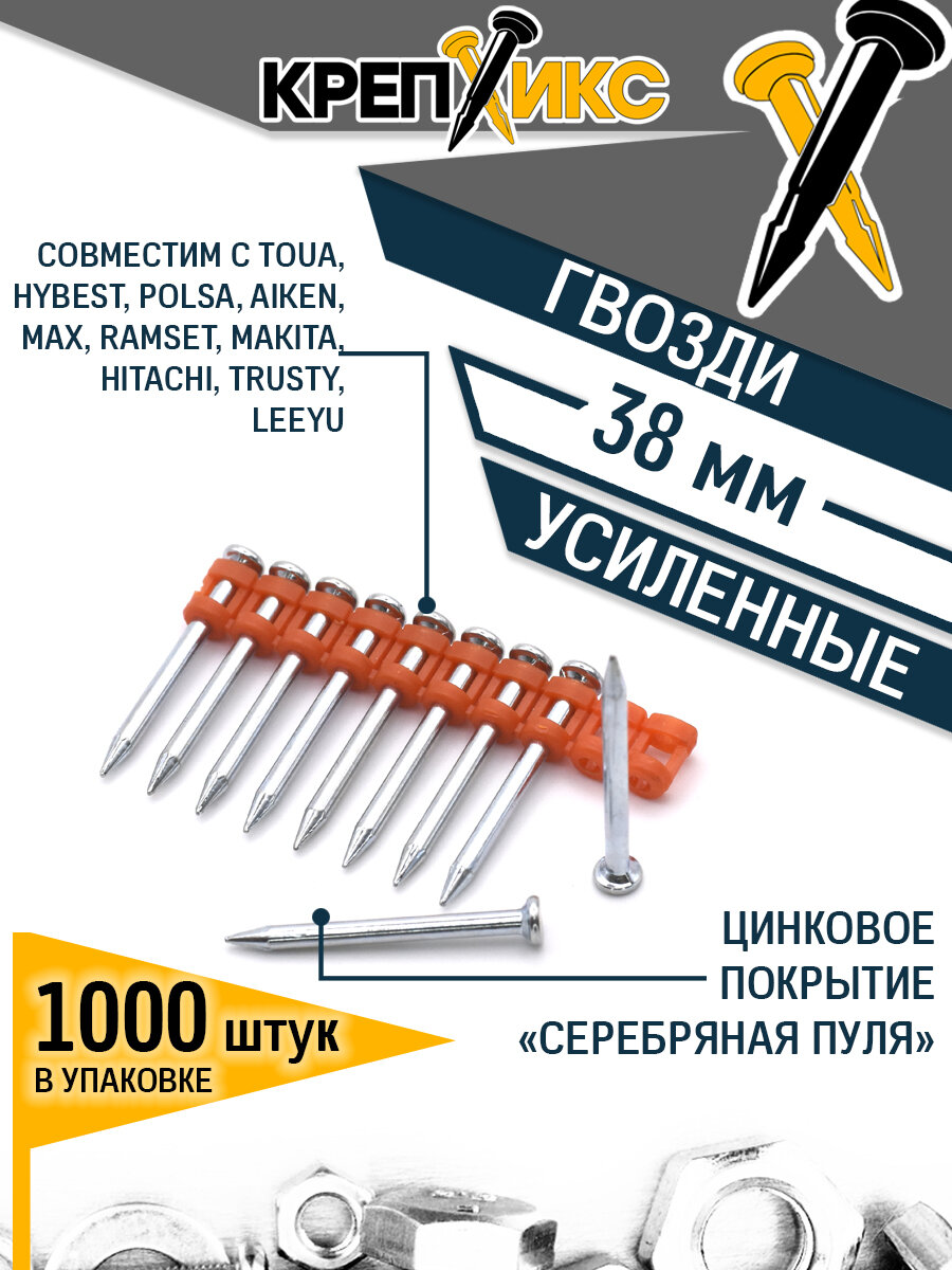 Гвозди для монтажного пистолета крепикс усиленные 38 мм (1000 шт/уп) интересное: